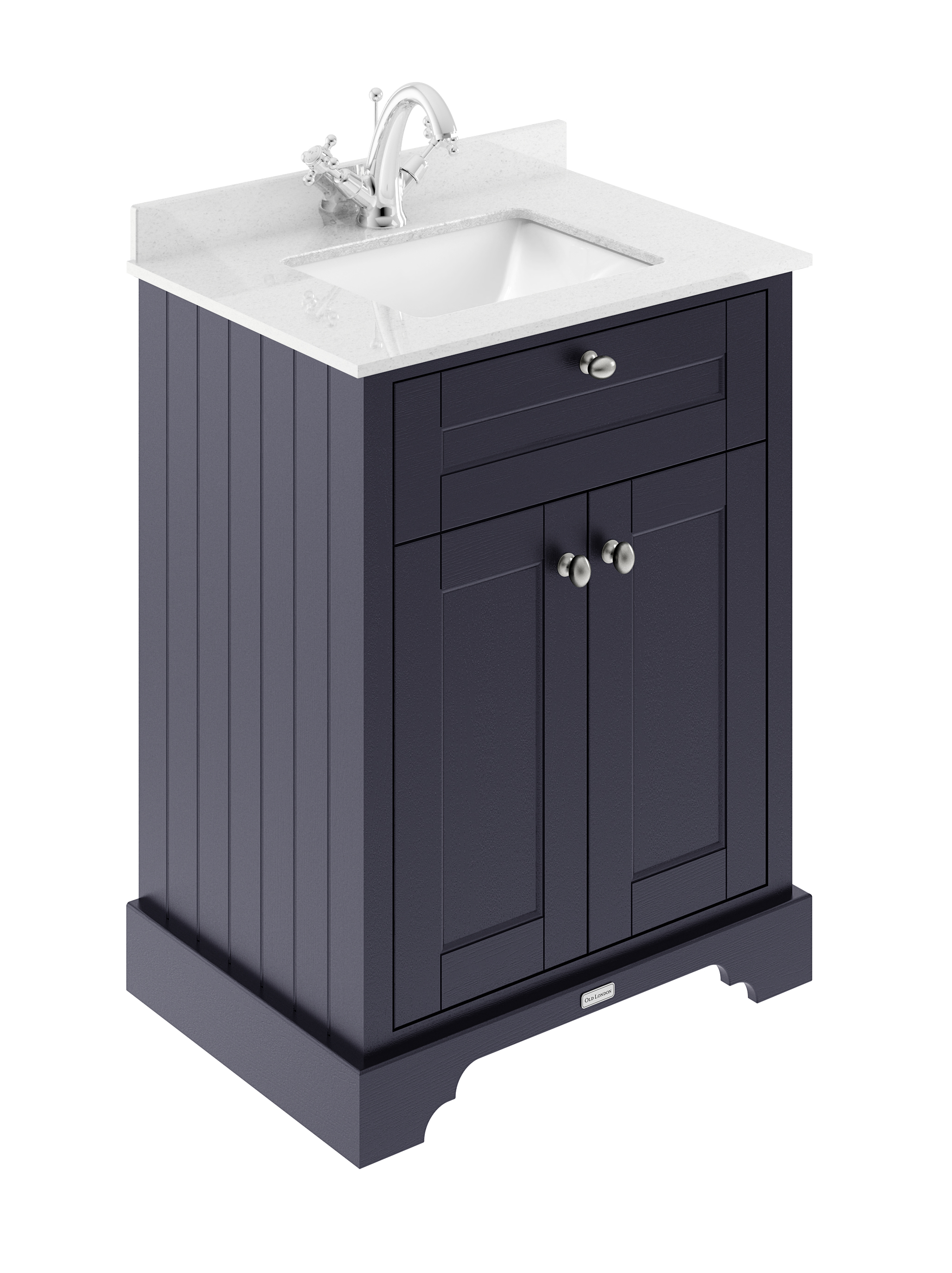 Hudson Reed Old London 600mm Floor Standing 2 Door Vanity Unit With White Marble Top Basin