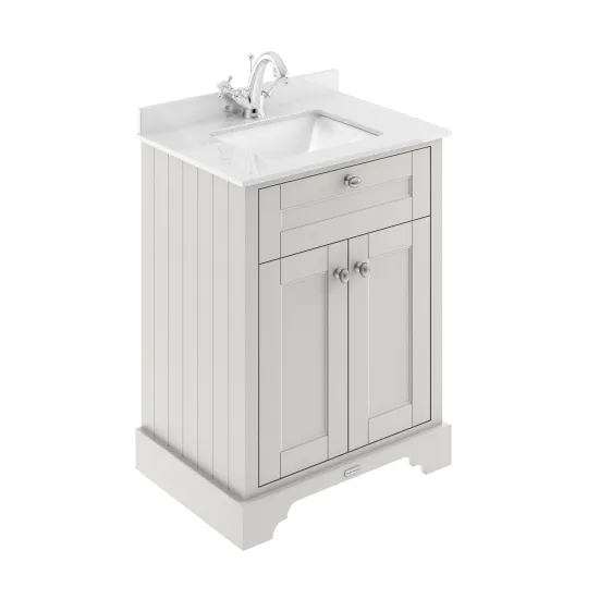 Hudson Reed Old London 620mm Timeless Sand Floor Standing 2 Door Vanity Unit With 1 Tap Hole White Marble Top Basin