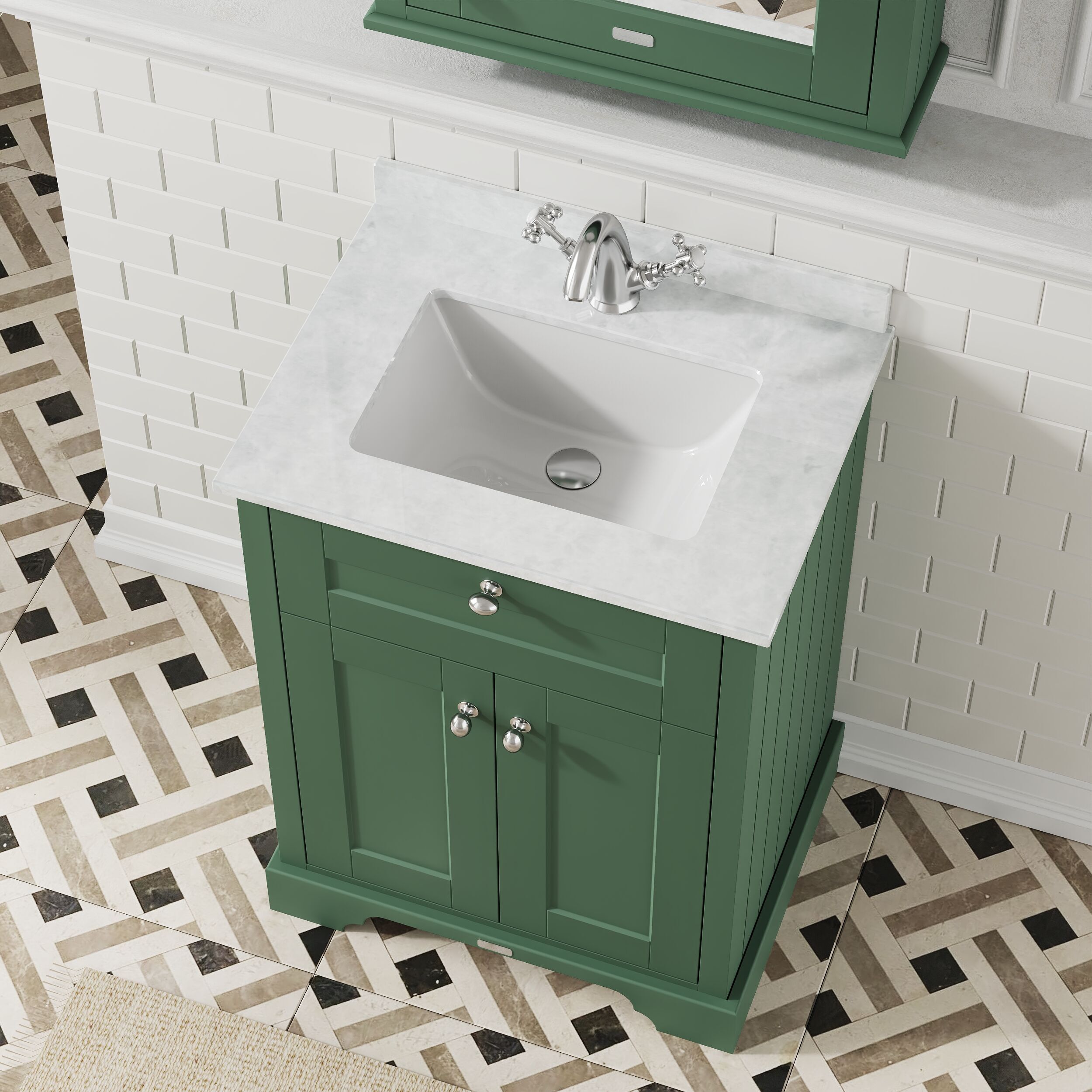 Old London Floor Standing 2 Door Vanity Basin Unit with Square Basin & 1 Tap Hole Marble Top, 600mm - Hunter Green