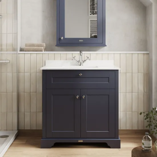 Hudson Reed Old London 800mm Twilight Blue Floor Standing 2 Door Vanity Unit with 1 Tap Hole White Marble Top Basin