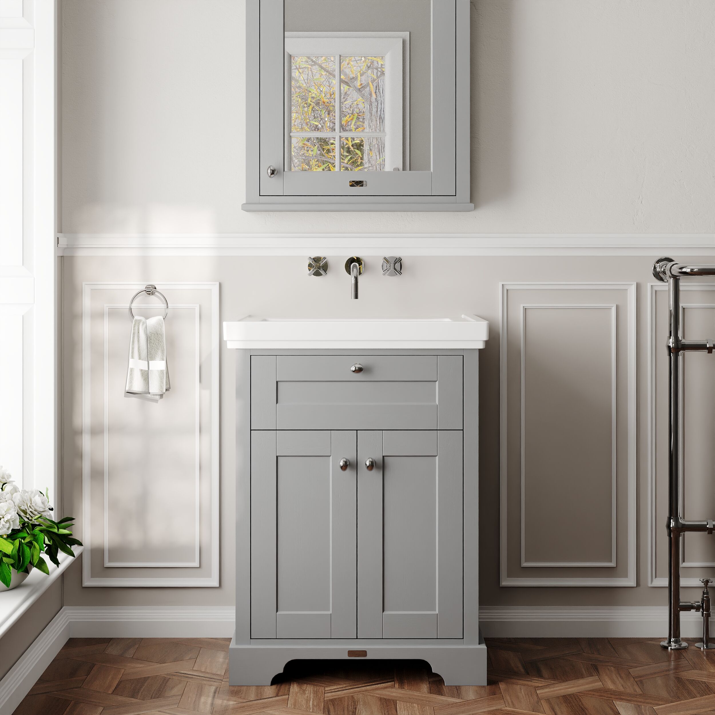 Hudson Reed Old London 600mm Floor Standing 2 Door Vanity Unit With Fireclay Basin