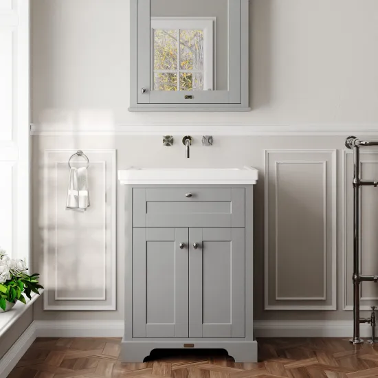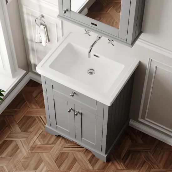Old London Floor Standing 2 Door Vanity Unit & 0 Tap Hole Fireclay Basin, 600mm - Storm Grey
