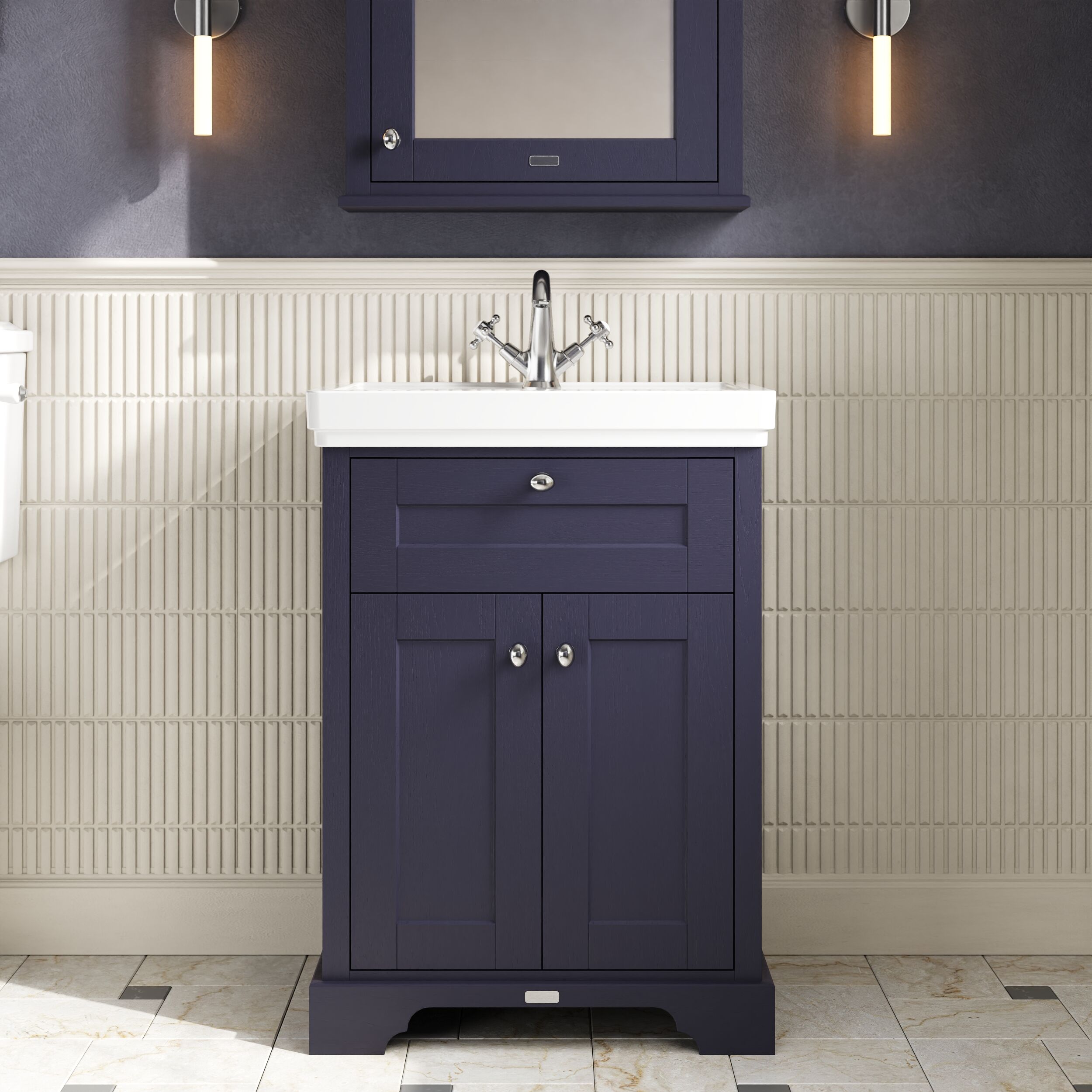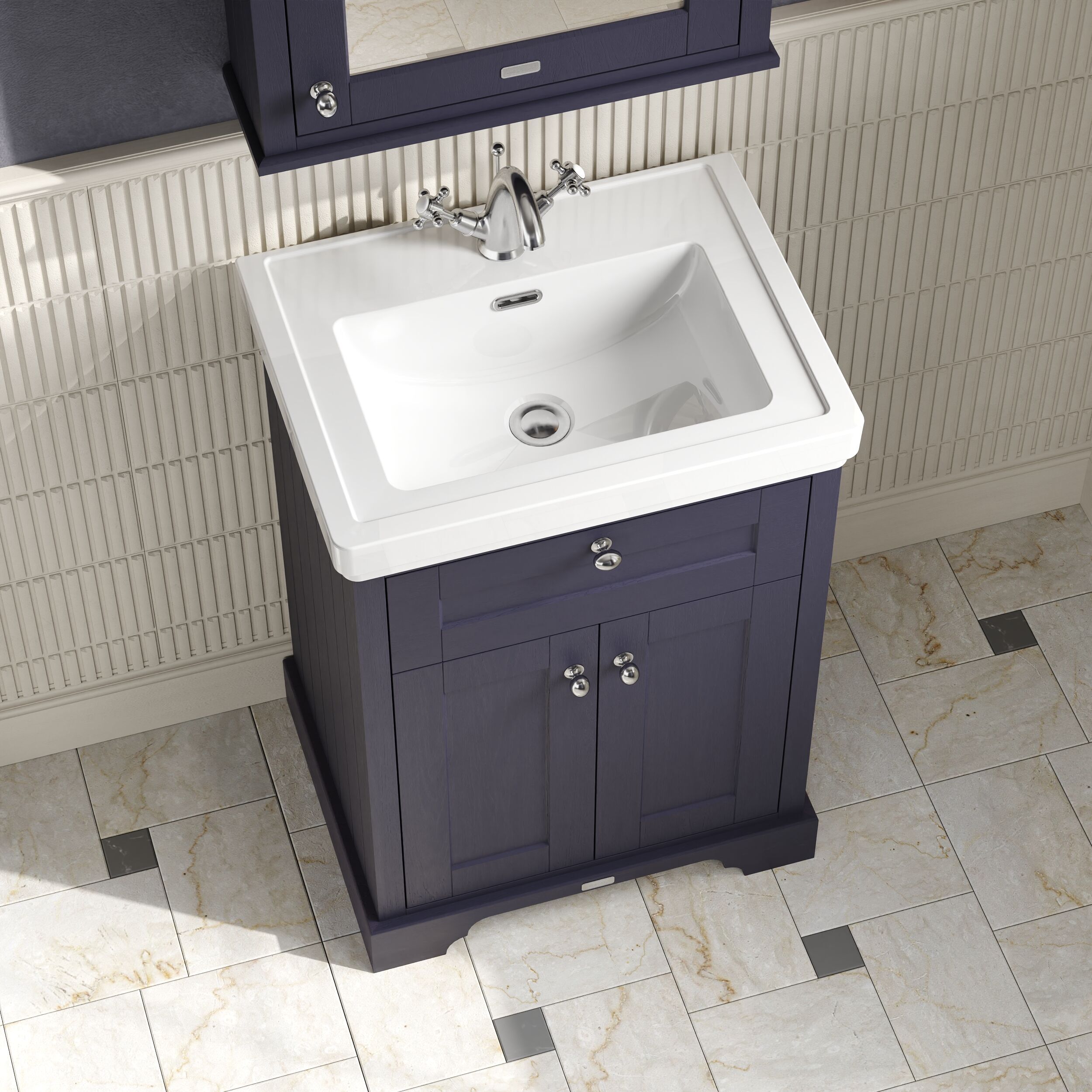 Hudson Reed Old London Floor Standing 2 Door Vanity Unit & 0 Tap Hole Fireclay Basin, 600mm - Twilight Blue