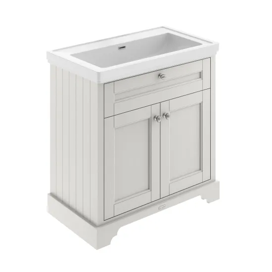Hudson Reed Old London 800mm Storm Grey Floor Standing 2 Door Vanity Unit With 0 Tap Hole Fireclay Basin