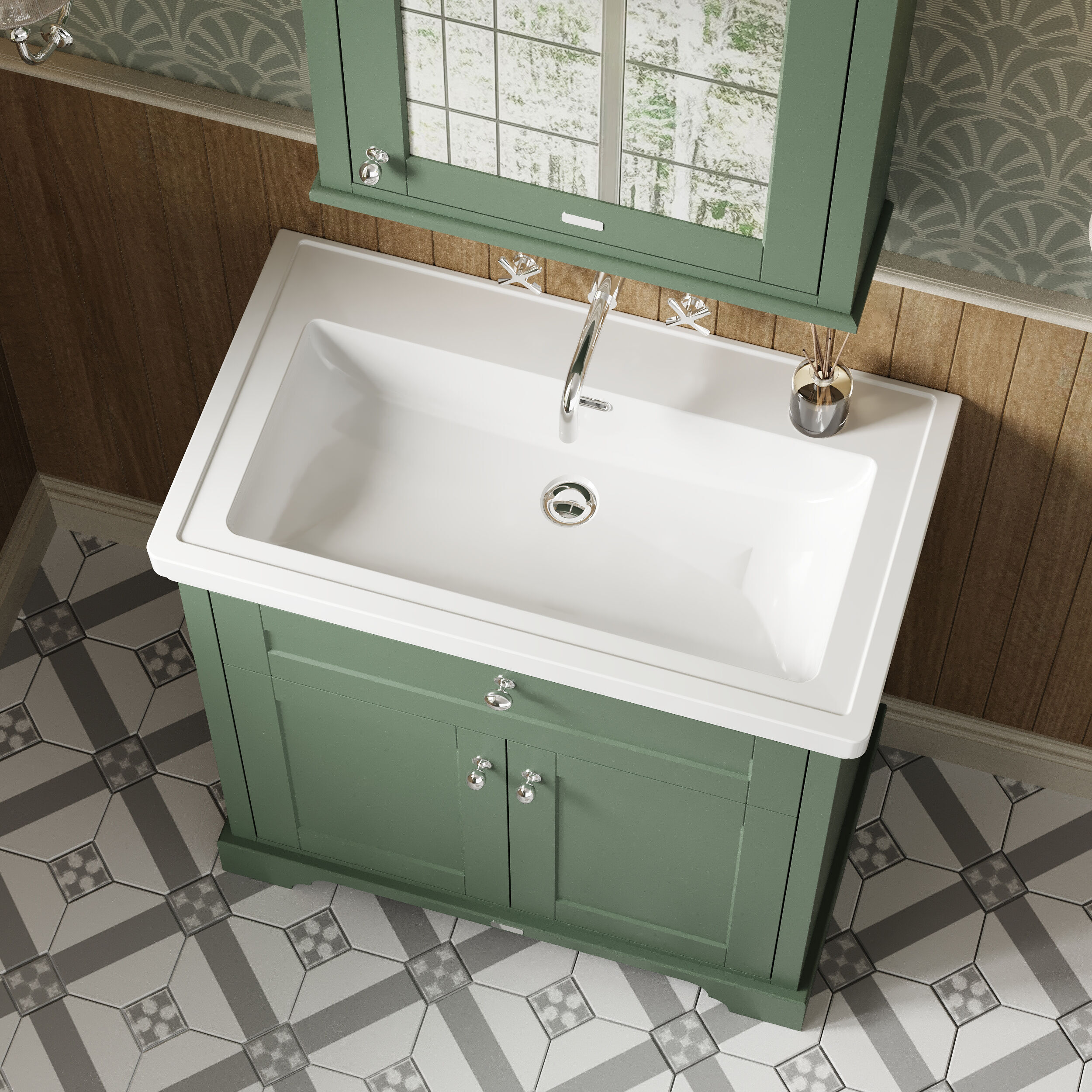 Hudson Reed Old London Floor Standing 2 Door Vanity Unit & 0 Tap Hole Fireclay Basin, 800mm - Hunter Green
