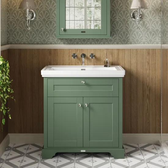 Hudson Reed Old London 800mm Hunter Green Floor Standing 2 Door 1 Tap Hole Fireclay Vanity Unit & Basin