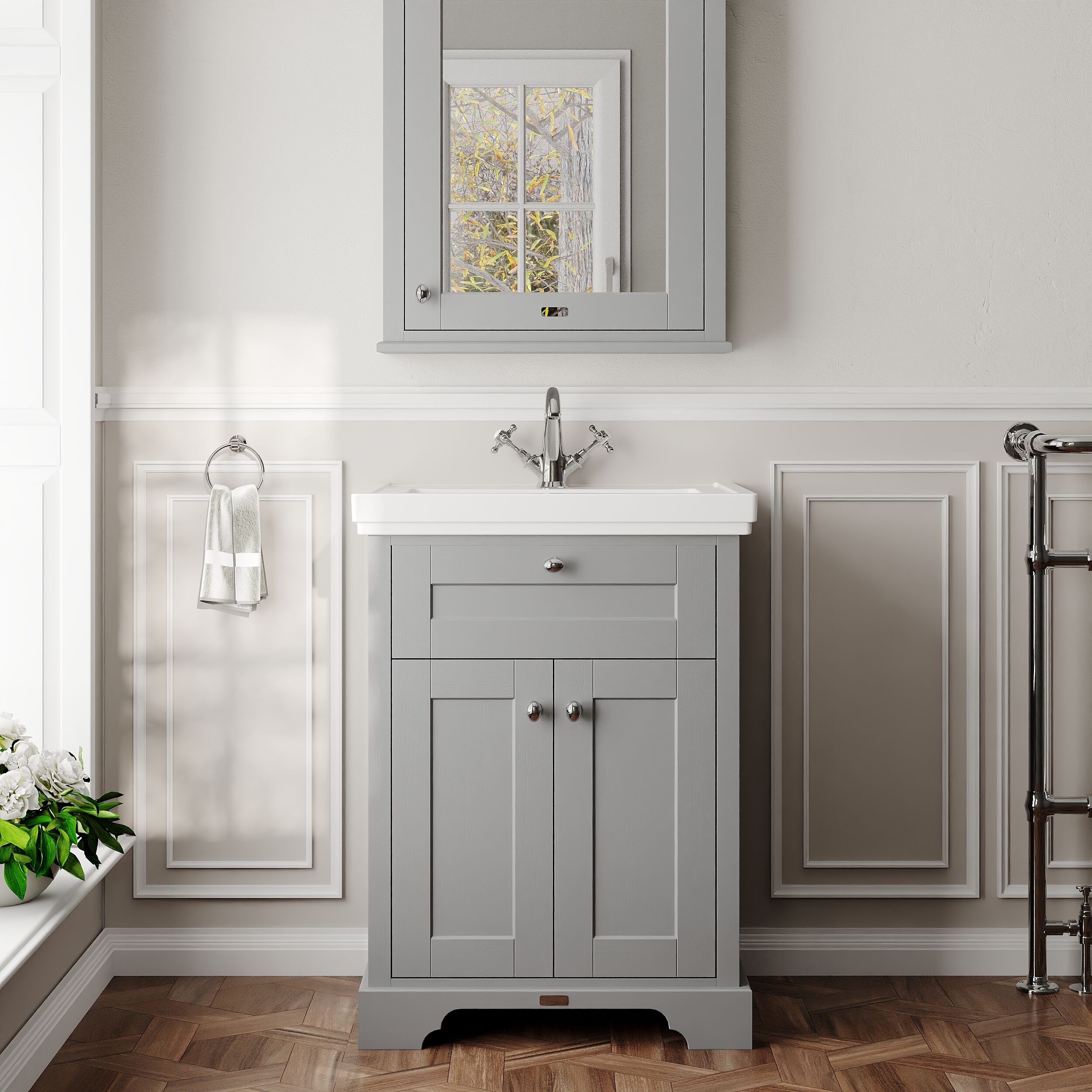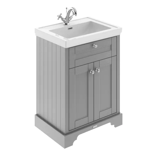 Hudson Reed Old London 600mm Storm Grey Floor Standing 2 Door Vanity Unit With 1 Tap Hole Ceramic Basin