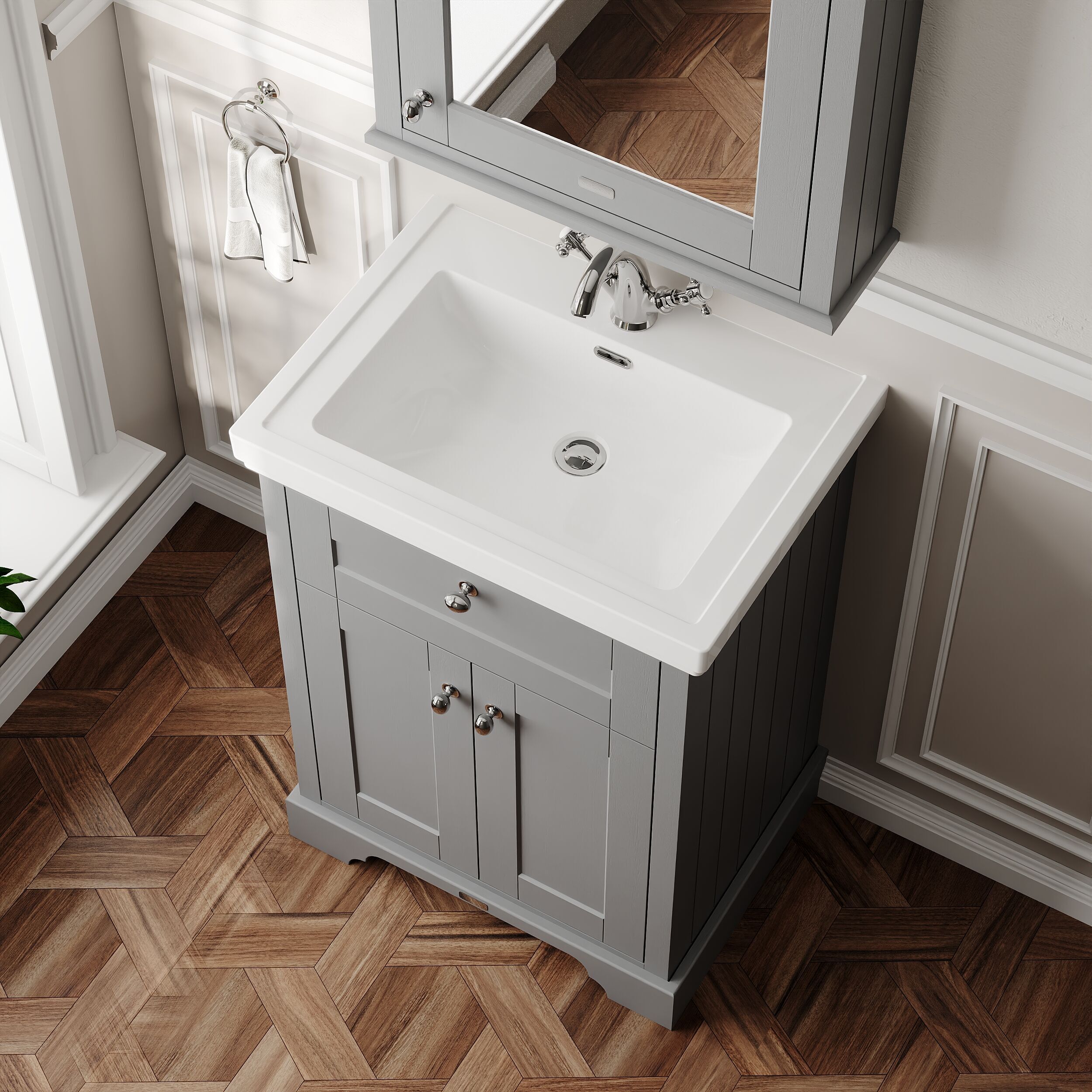 Old London Floor Standing 2 Door Vanity Unit & 1 Tap Hole Fireclay Basin, 600mm - Storm Grey
