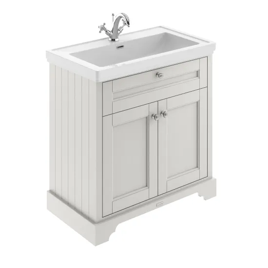 Hudson Reed Old London 800mm Storm Grey Floor Standing 2 Door Vanity Unit with 1 Tap Hole Ceramic Basin