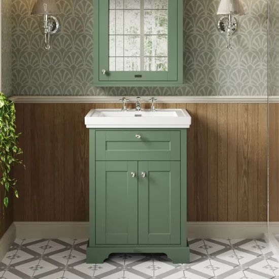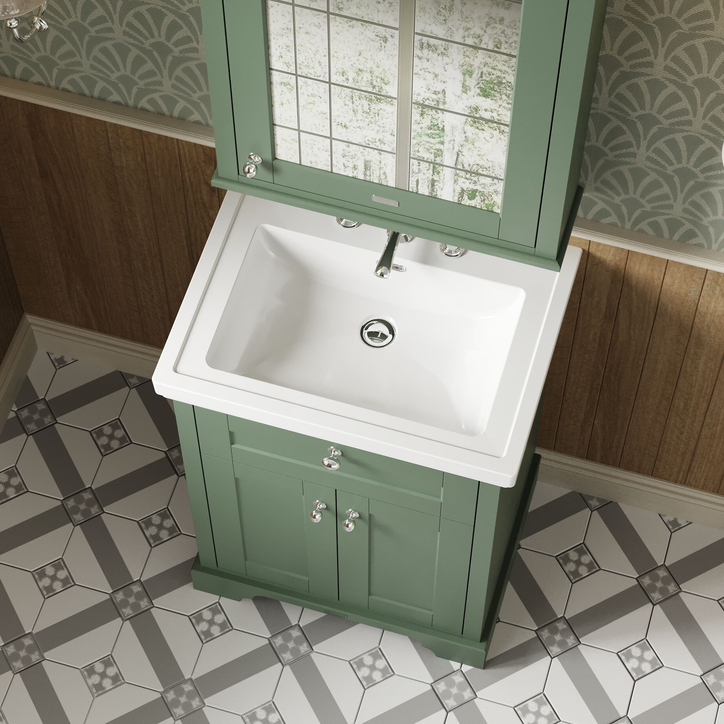 Hudson Reed Old London Floor Standing 2 Door Vanity Unit & 3 Tap Hole Fireclay Basin, 600mm - Hunter Green