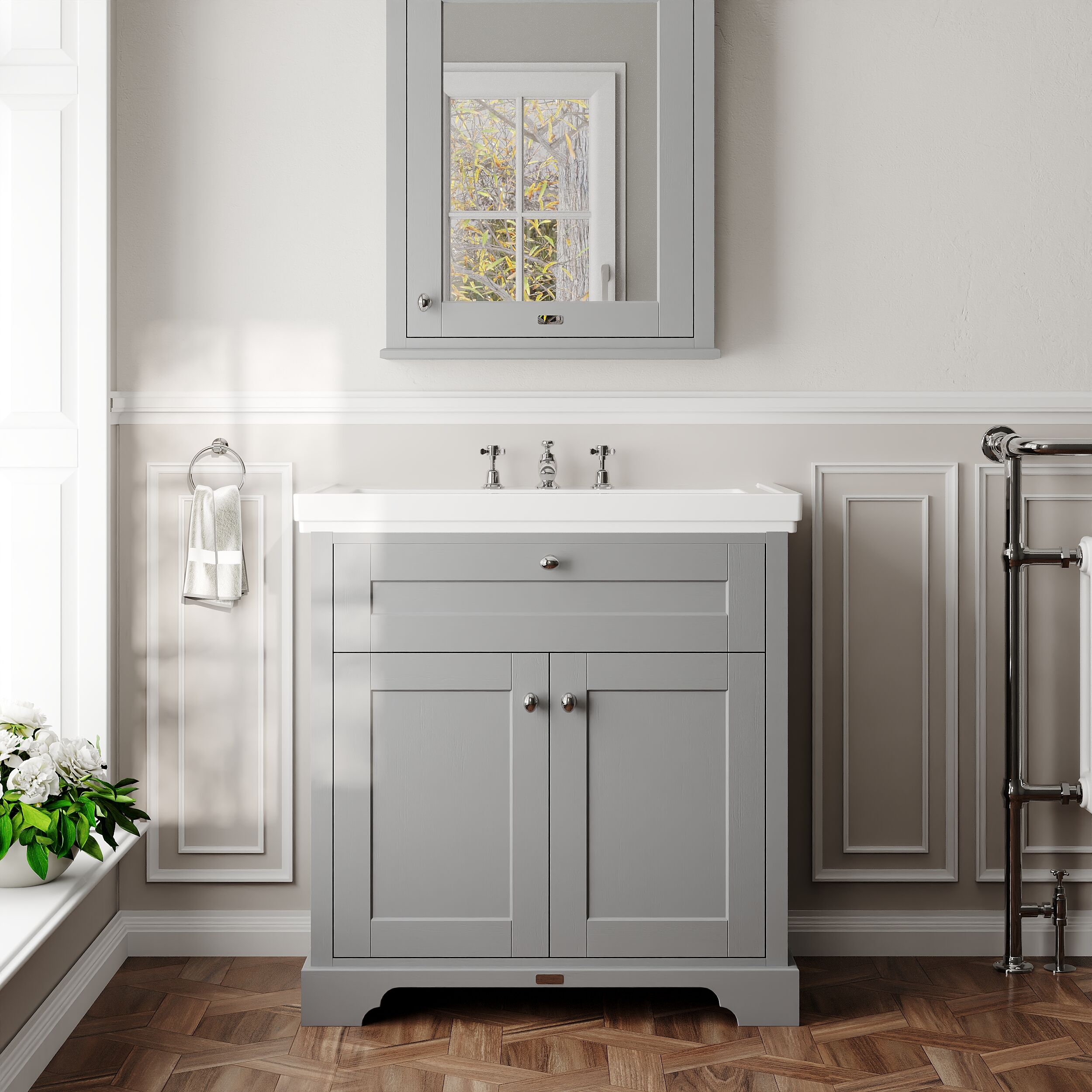 Old London Floor Standing 2 Door Vanity Unit & 3 Tap Hole Fireclay Basin, 800mm - Storm Grey