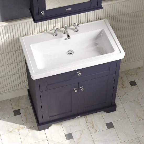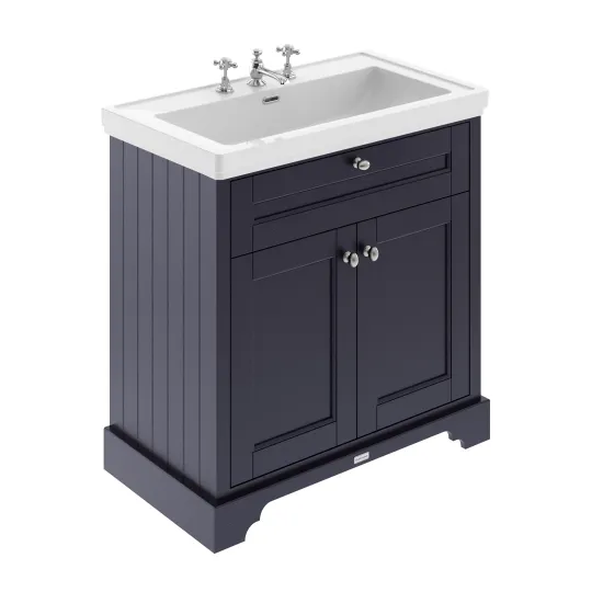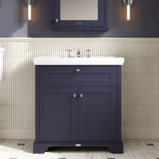 Hudson Reed Old London Floor Standing 2 Door Vanity Unit & 3 Tap Hole Fireclay Basin, 800mm - Twilight Blue