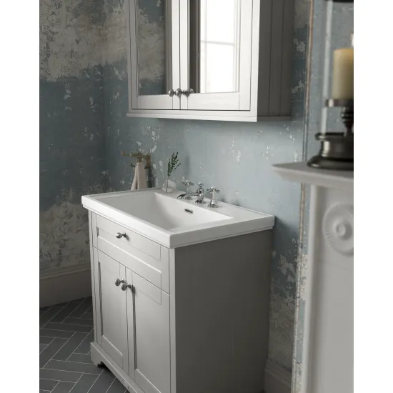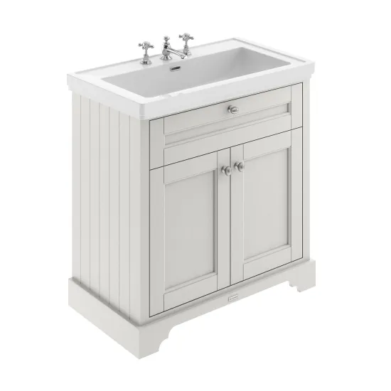 Hudson Reed Old London 800mm Storm Grey Floor Standing 2 Door Vanity Unit With 3 Tap Hole Grey Marble Top Basin