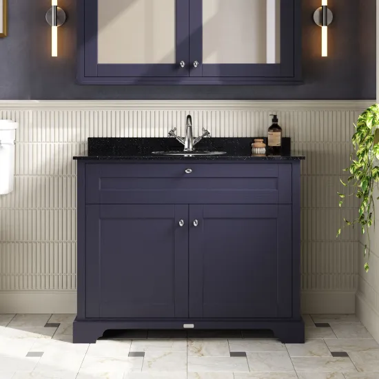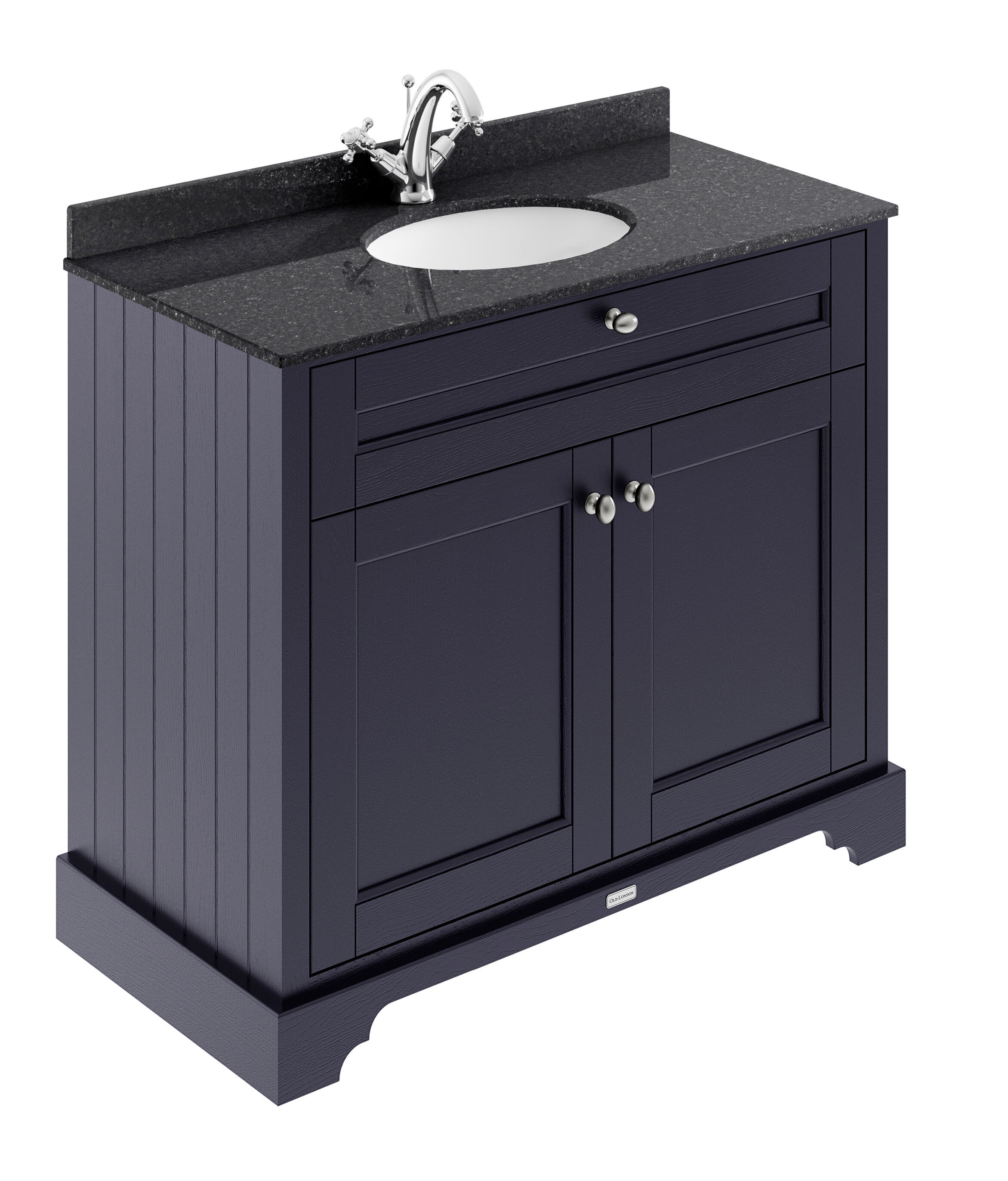 Old London Floor Standing 2 Door Vanity Unit with 1 Tap Hole Black Marble Top 1000mm - Twilight Blue