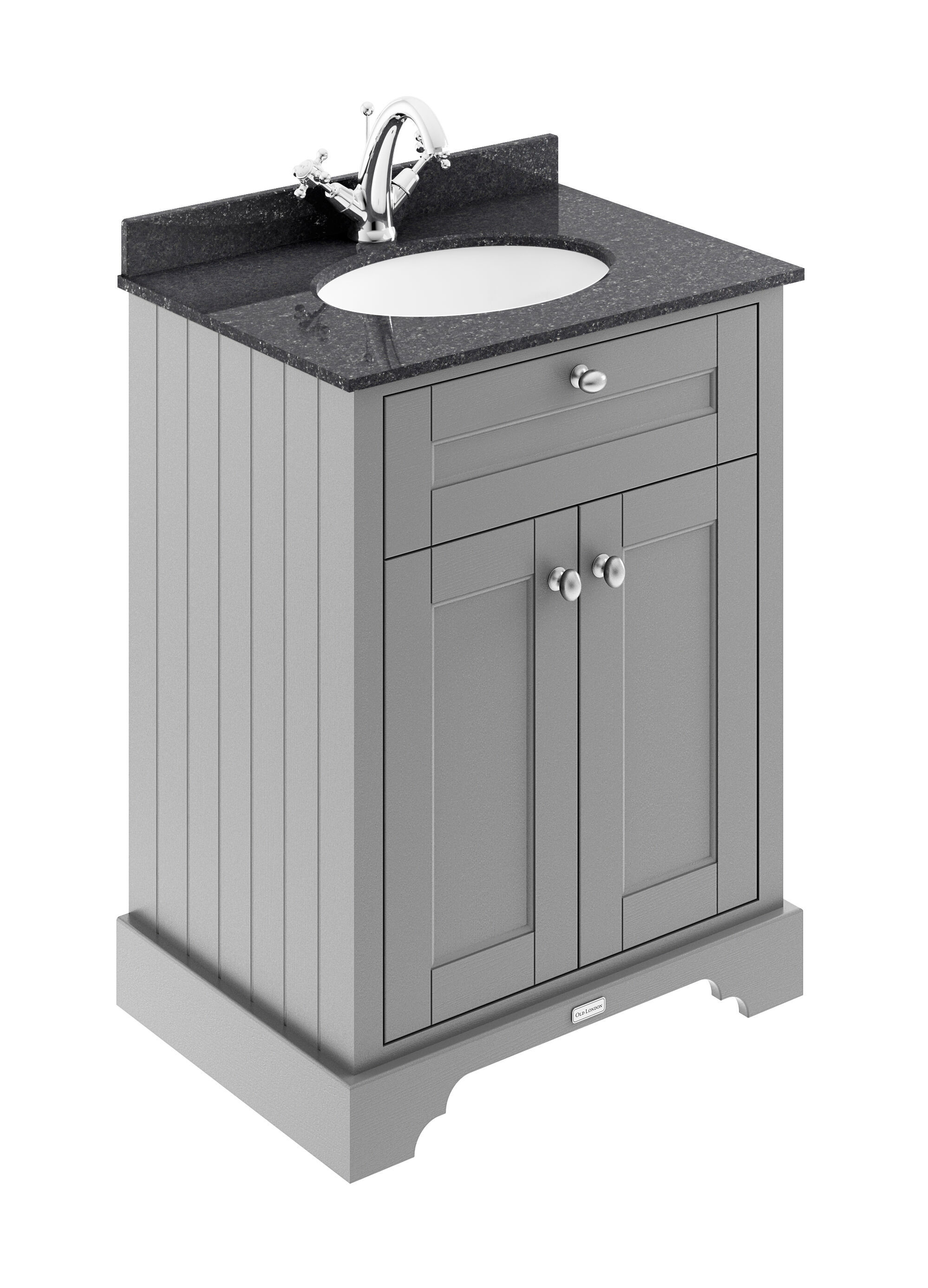Old London Floor Standing 2 Door Vanity Unit with 1 Tap Hole Black Marble Top 600mm - Storm Grey