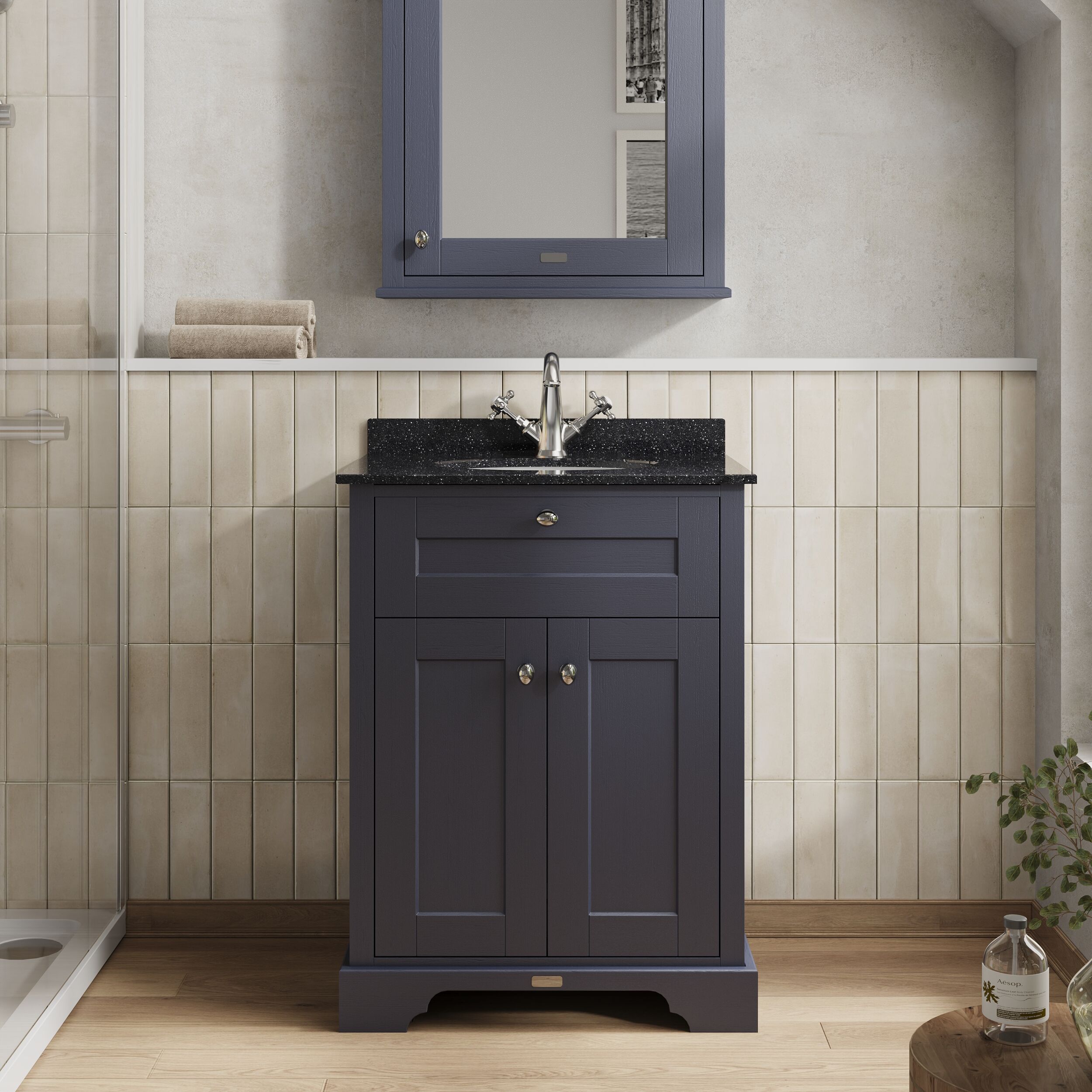 Old London Floor Standing 2 Door Vanity Unit with 1 Tap Hole Black Marble Top 600mm - Twilight Blue