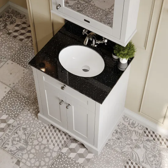 Old London Floor Standing 2 Door Vanity Unit with 1 Tap Hole Black Marble Top 600mm - Timeless Sand