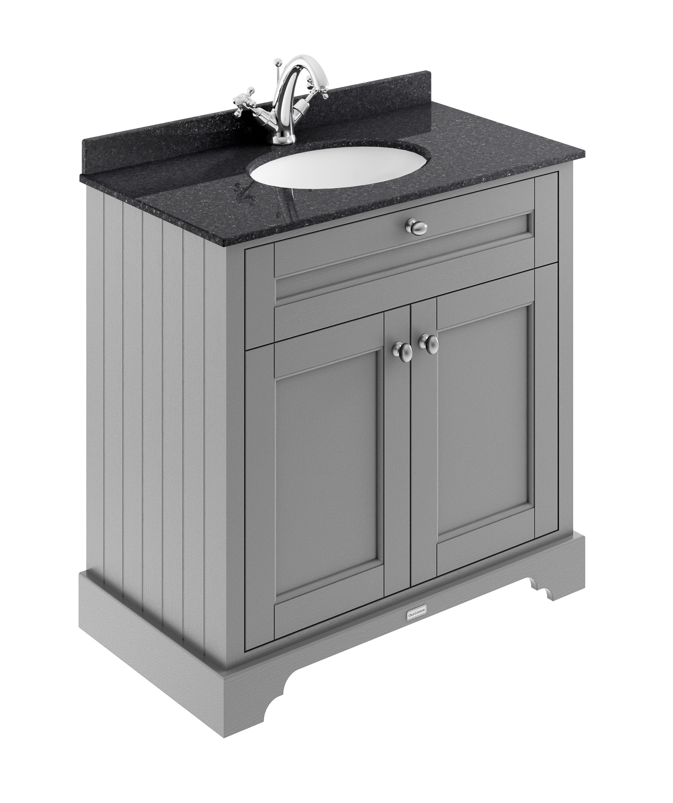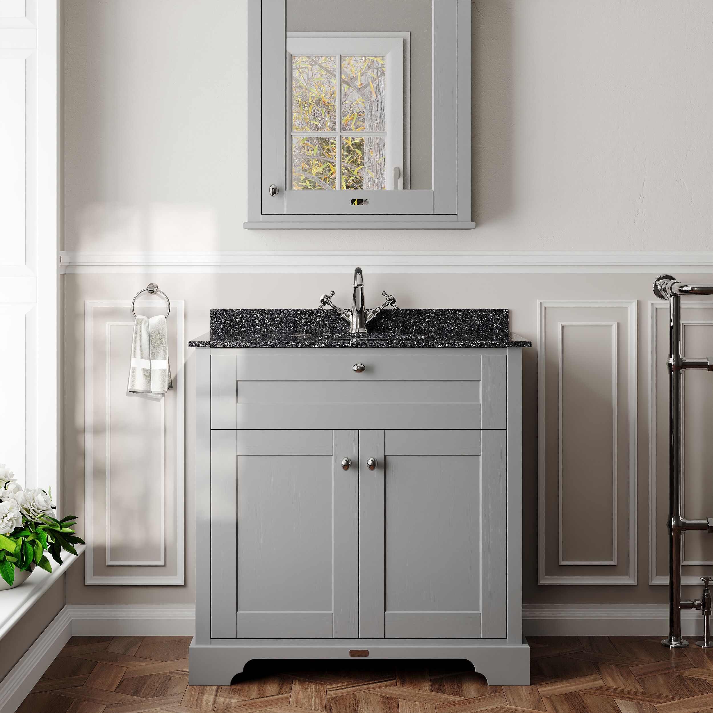 Old London Floor Standing 2 Door Vanity Unit with 1 Tap Hole Black Marble Top 800mm - Storm Grey