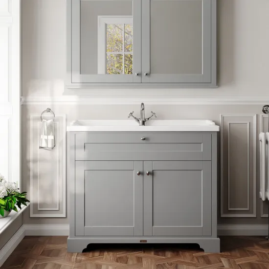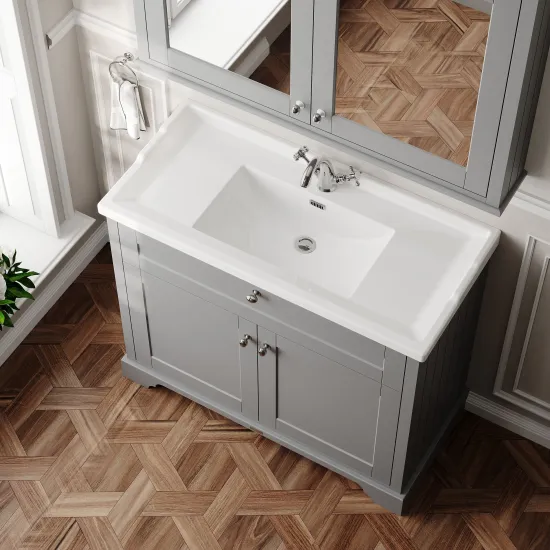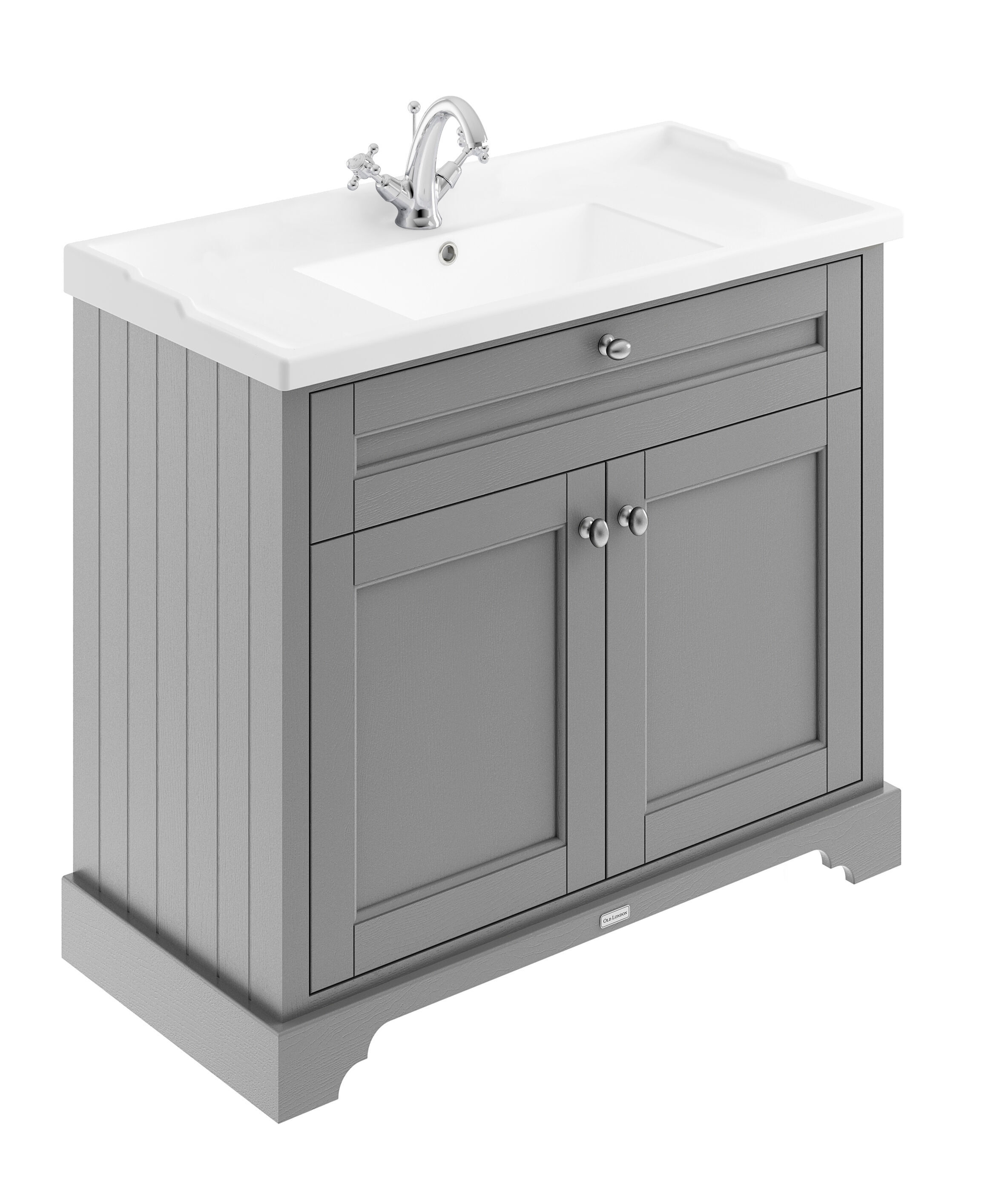 Old London Floor Standing 2 Door Vanity Unit with 1 Tap Hole Ceramic Basin 1000mm - Storm Grey