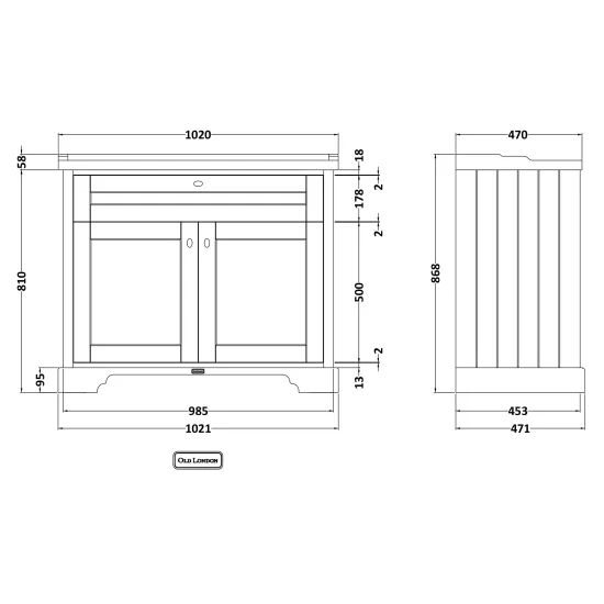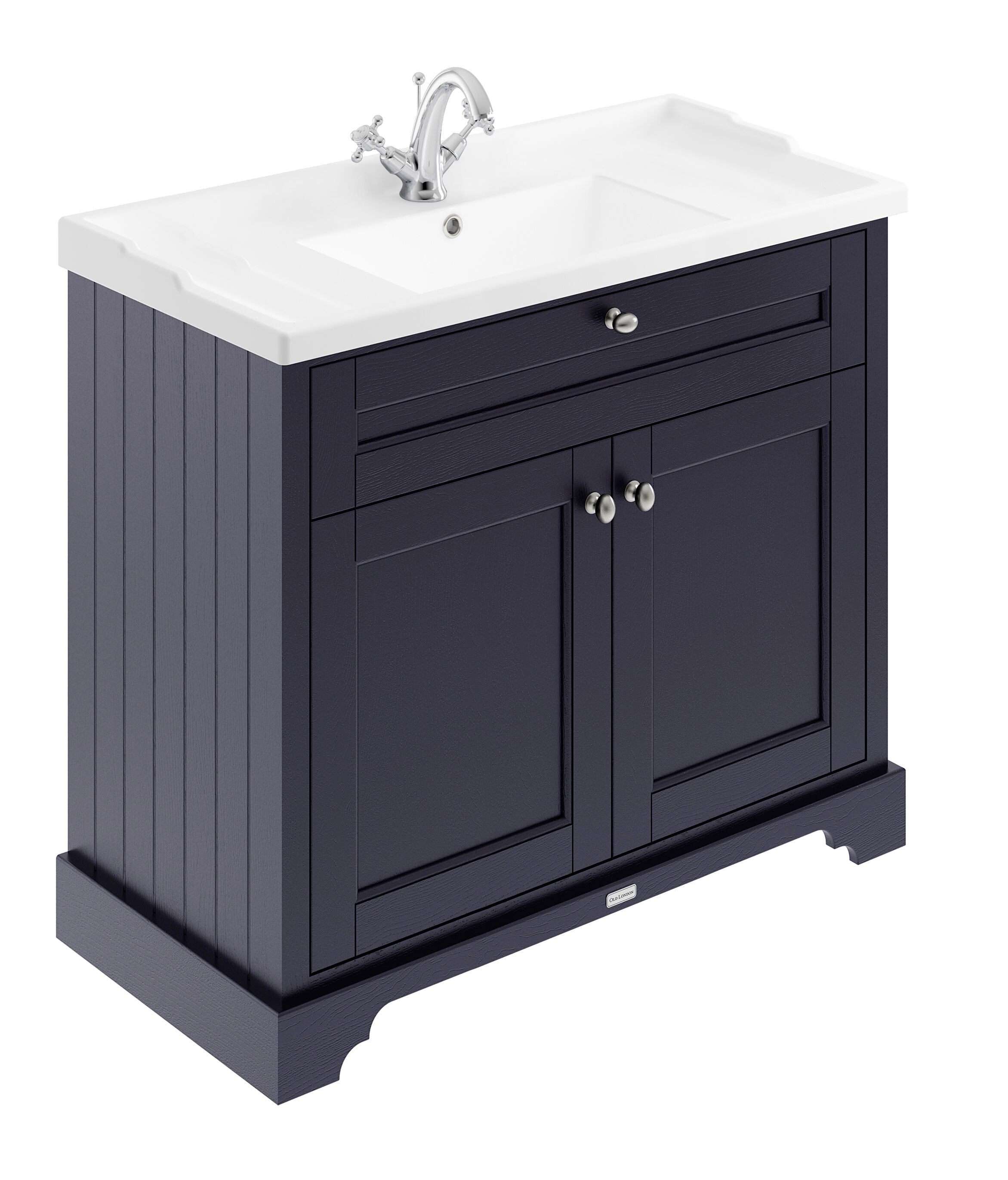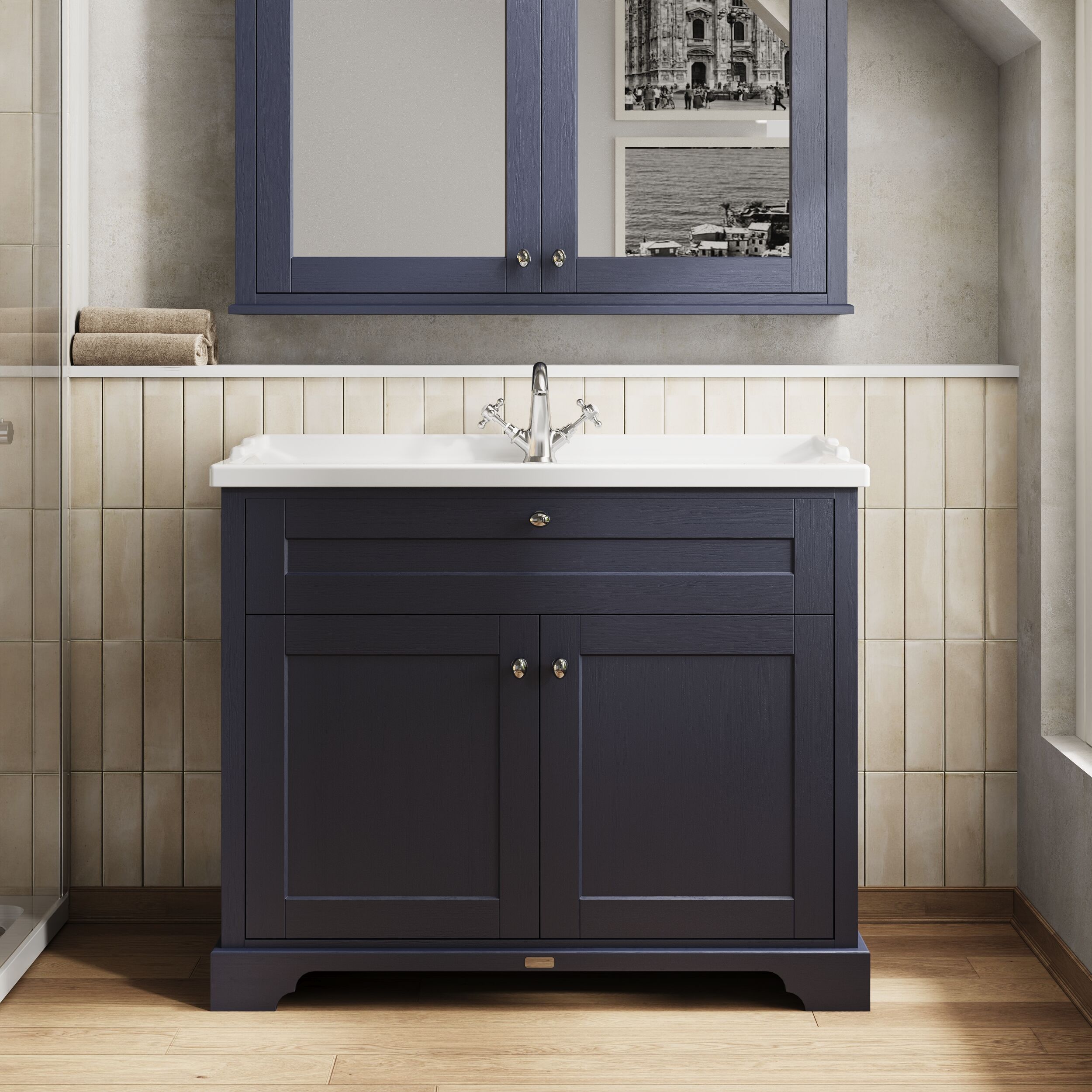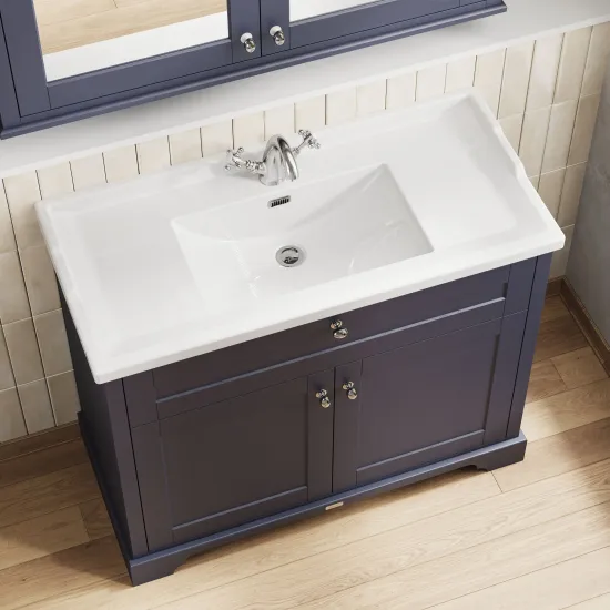 Old London Floor Standing 2 Door Vanity Unit with 1 Tap Hole Ceramic Basin 1000mm - Twilight Blue
