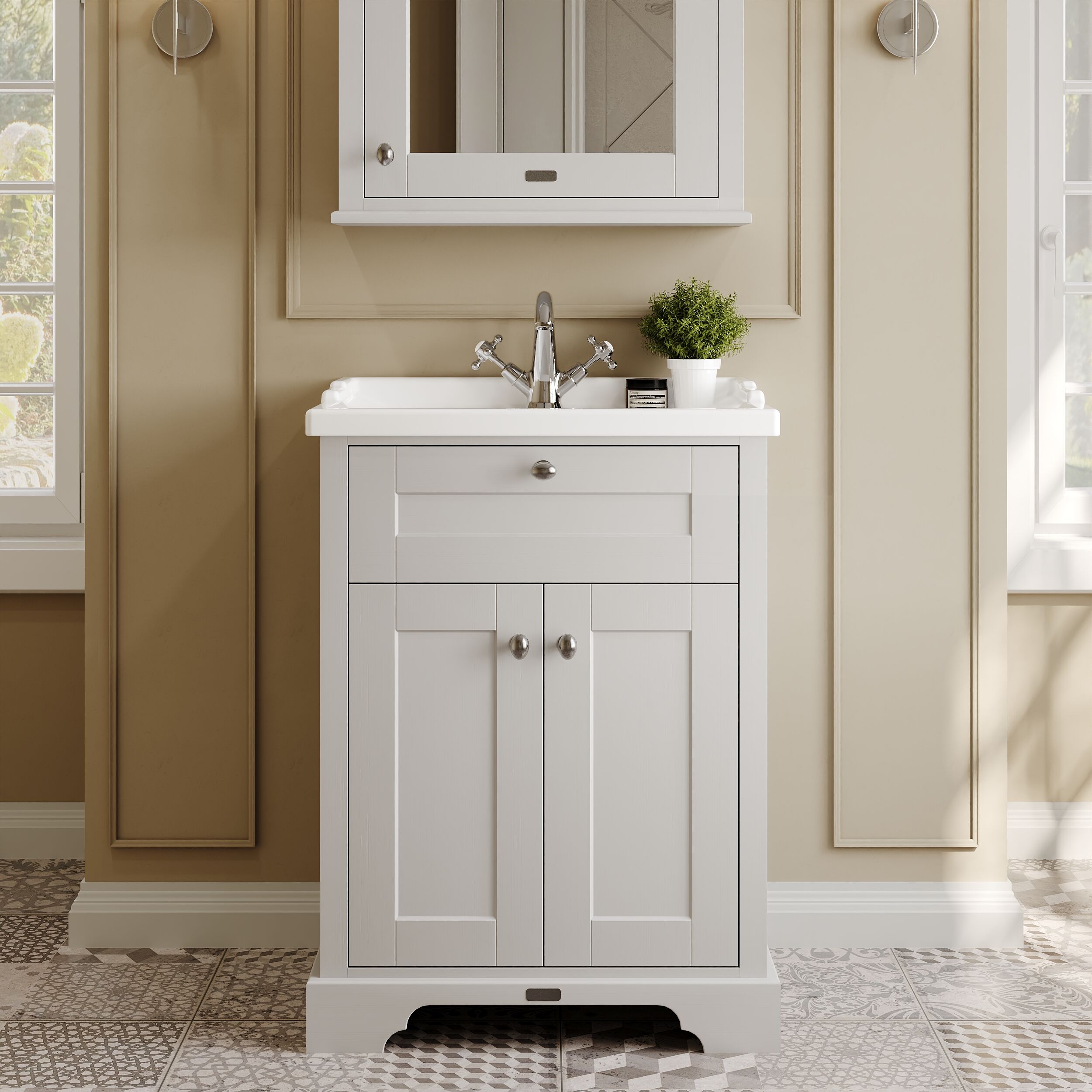 Old London Floor Standing 2 Door Vanity Unit with 1 Tap Hole Ceramic Basin 600mm - Timeless Sand