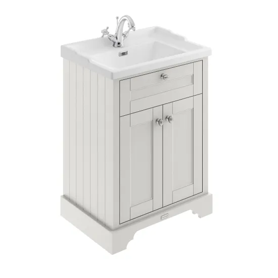Hudson Reed Old London 600mm Storm Grey Floor Standing 2 Door Vanity Unit With 1 Tap Hole Ceramic Basin