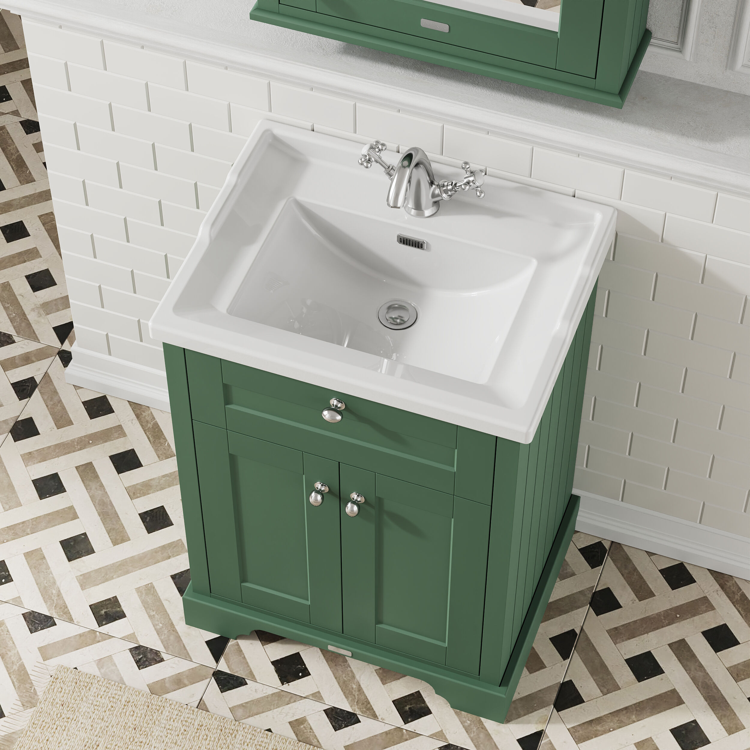 Old London Floor Standing 2 Door Vanity Unit with 1 Tap Hole Ceramic Basin 600mm - Hunter Green