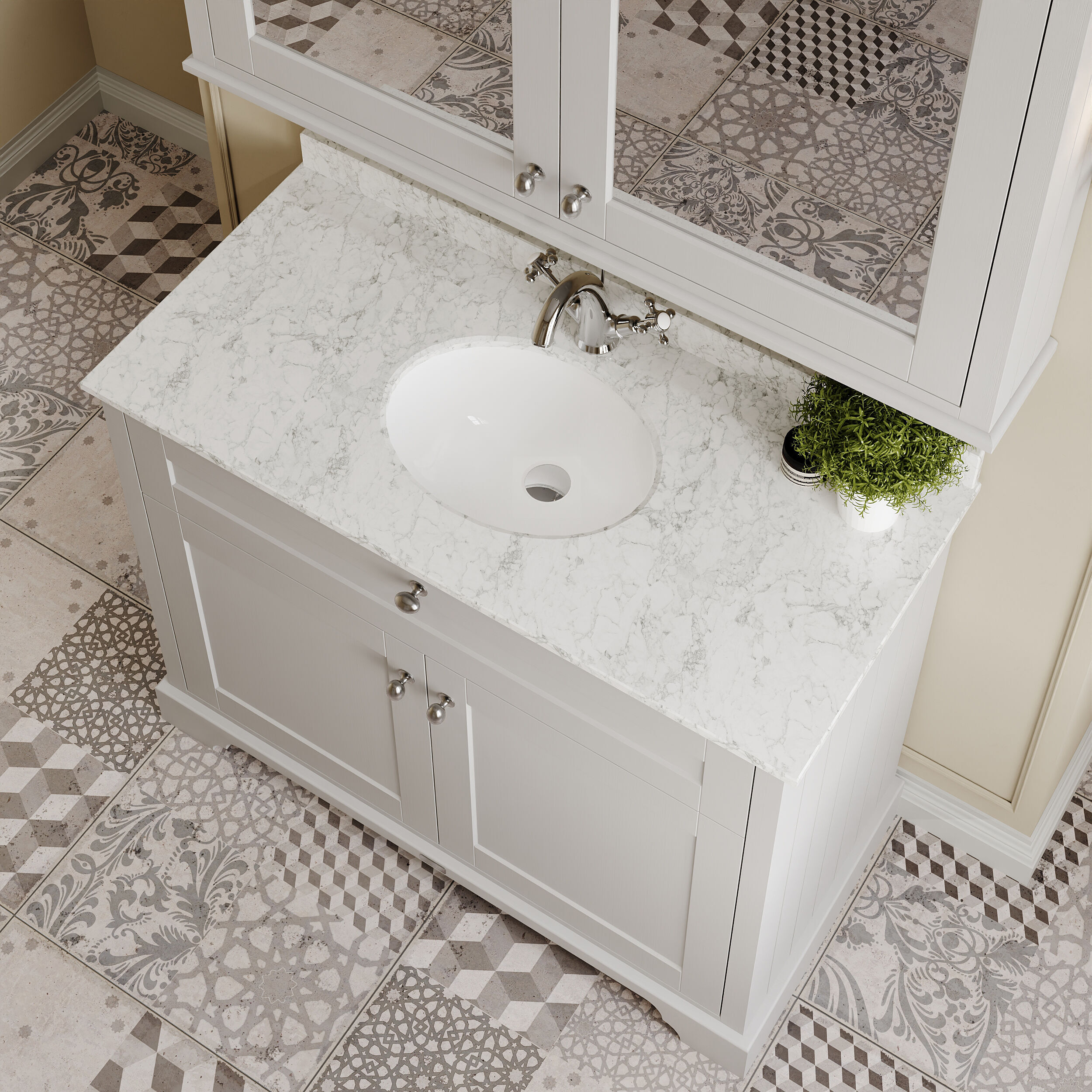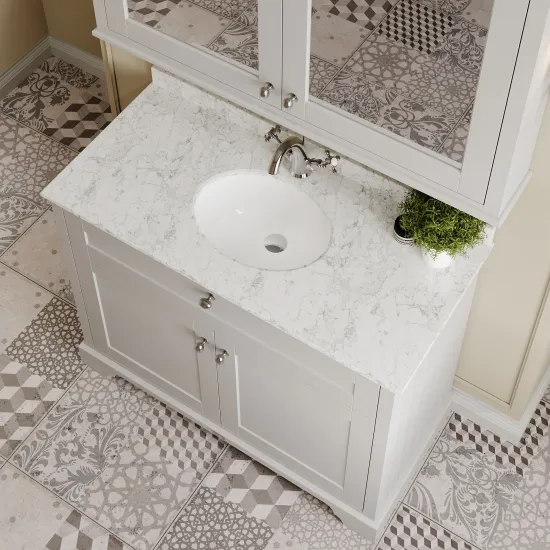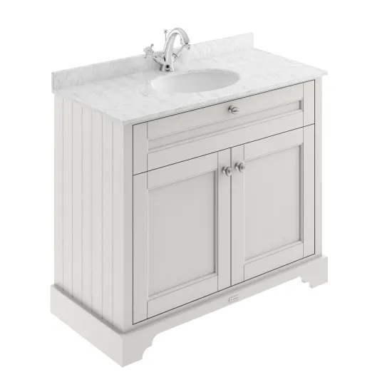Old London Floor Standing 2 Door Vanity Unit with 1 Tap Hole Grey Marble Top 1000mm - Timeless Sand