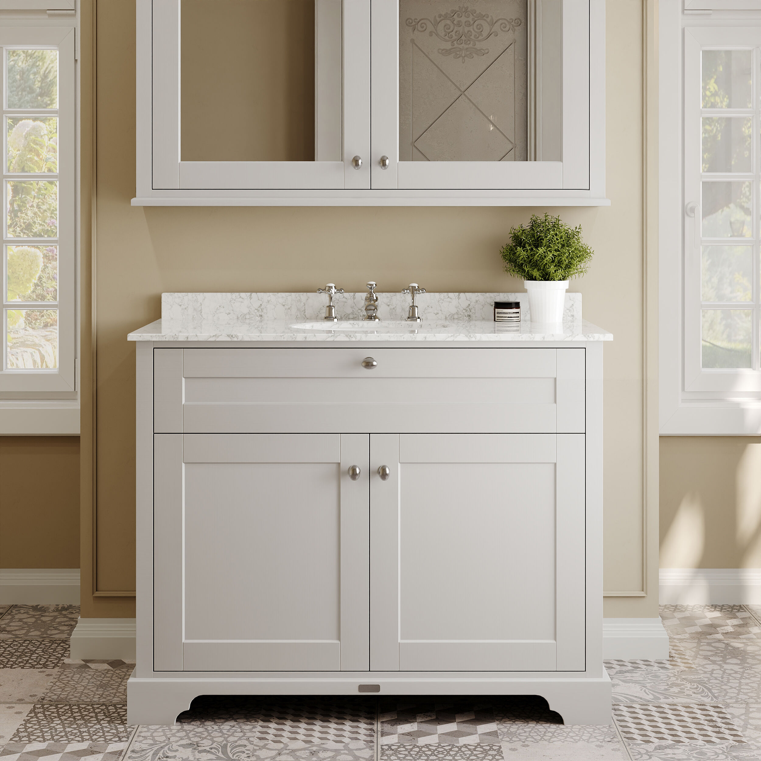 Hudson Reed Old London 1000mm Storm Grey Floor Standing 2 Door Vanity Unit With Grey Marble Top Basin 3 Taphole