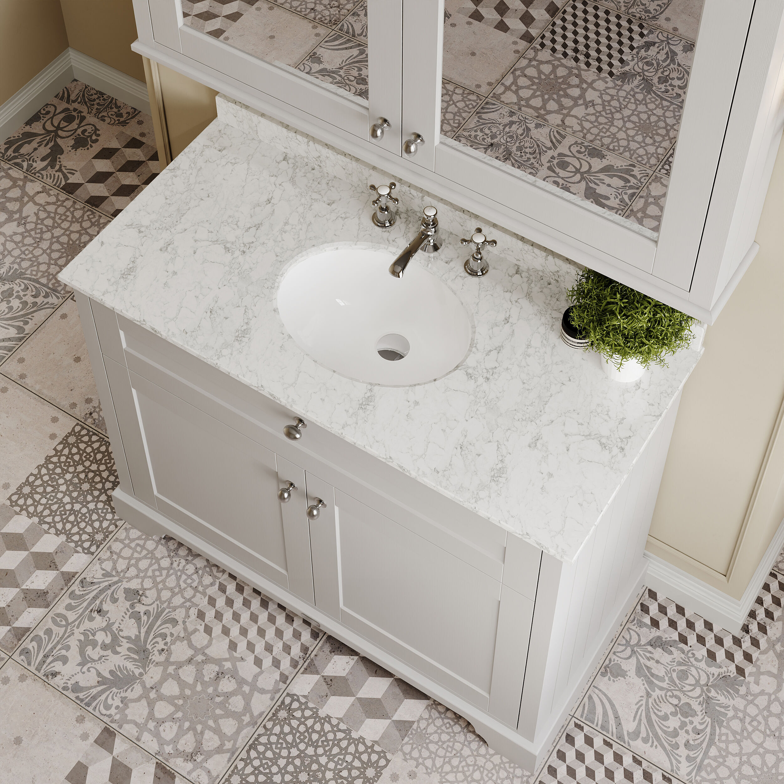 Old London Floor Standing 2 Door Vanity Unit with 1 Tap Hole Grey Marble Top 1000mm - Timeless Sand