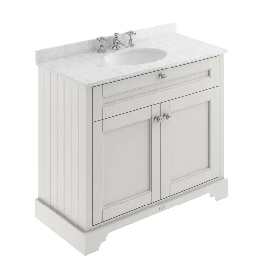 Hudson Reed Old London 1000mm Floor Standing 2 Door Vanity Unit with 3 Tap Hole Grey Marble Top