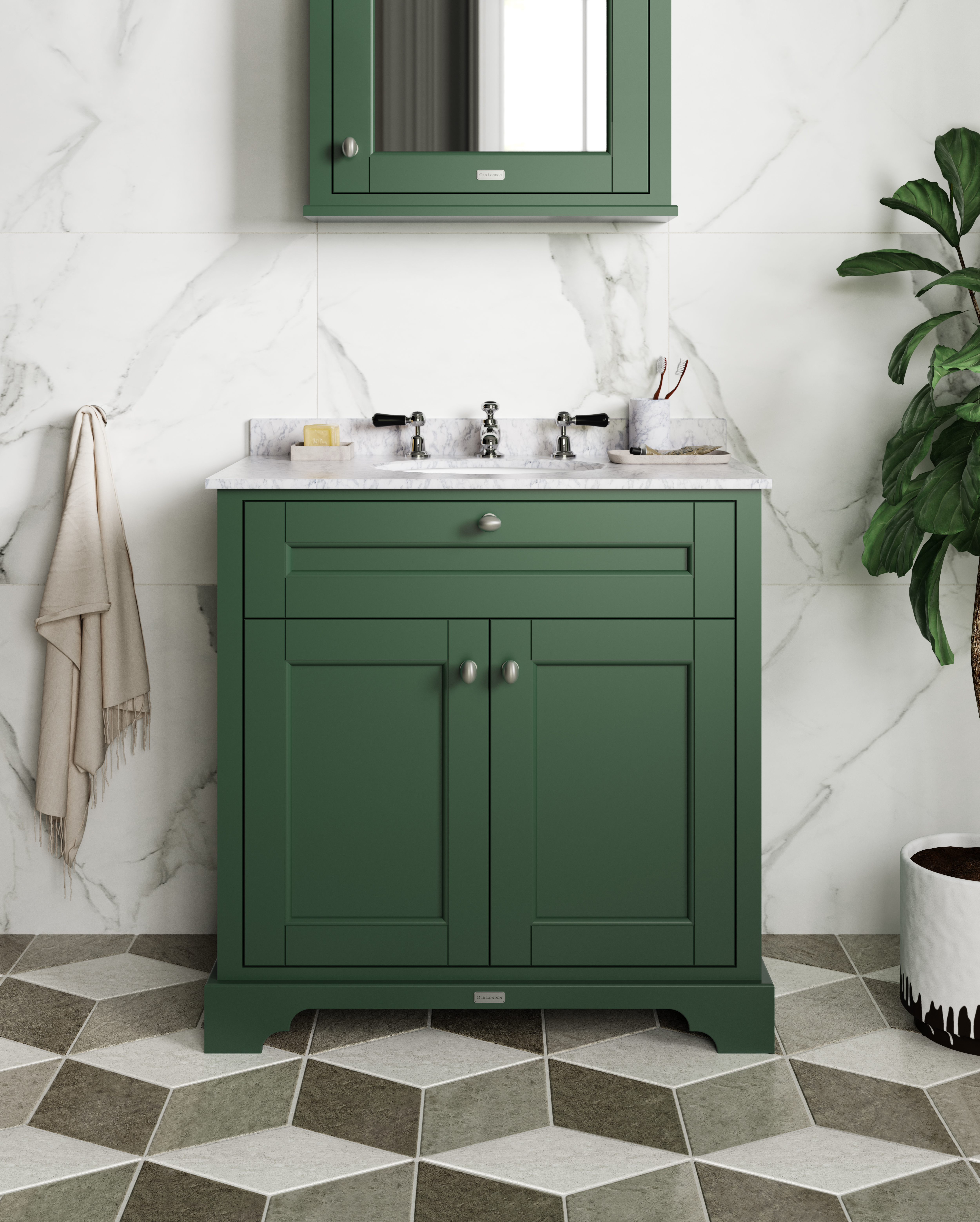 Hudson Reed Old London Hunter Green Traditional Floor Standing 2 Door Vanity Unit With Grey Marble Basin