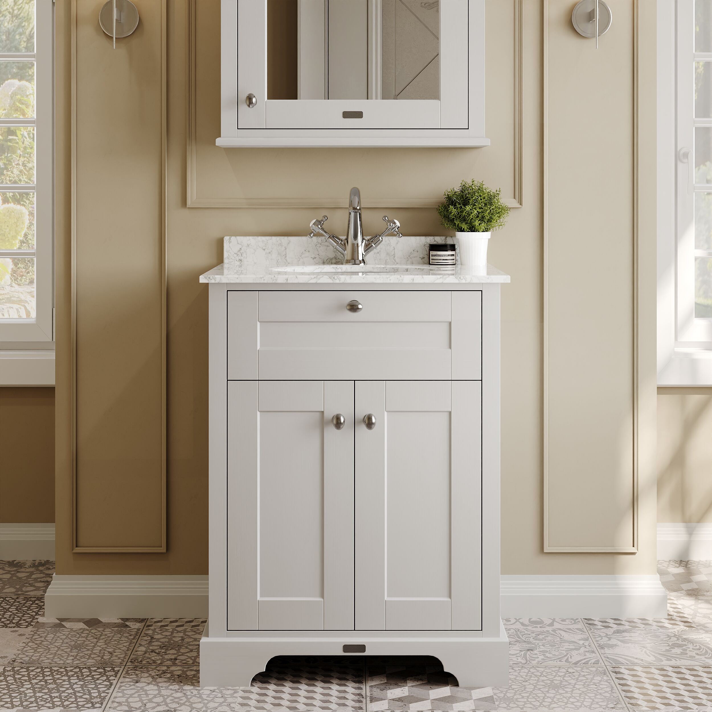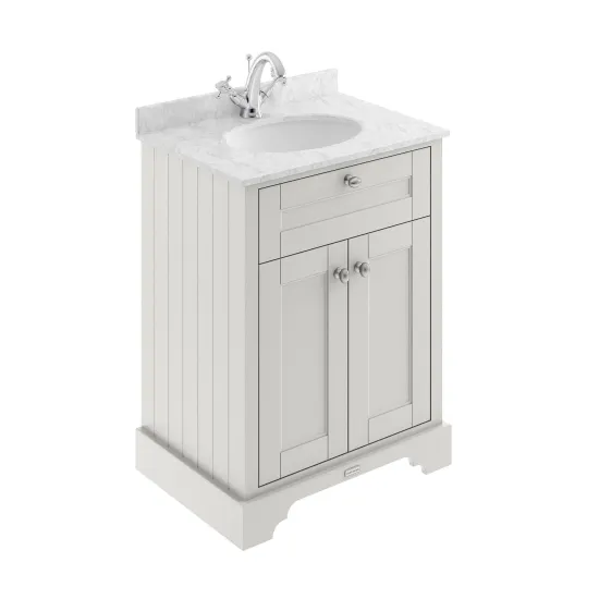 Old London Floor Standing 2 Door Vanity Unit with 1 Tap Hole Grey Marble Top 600mm - Timeless Sand
