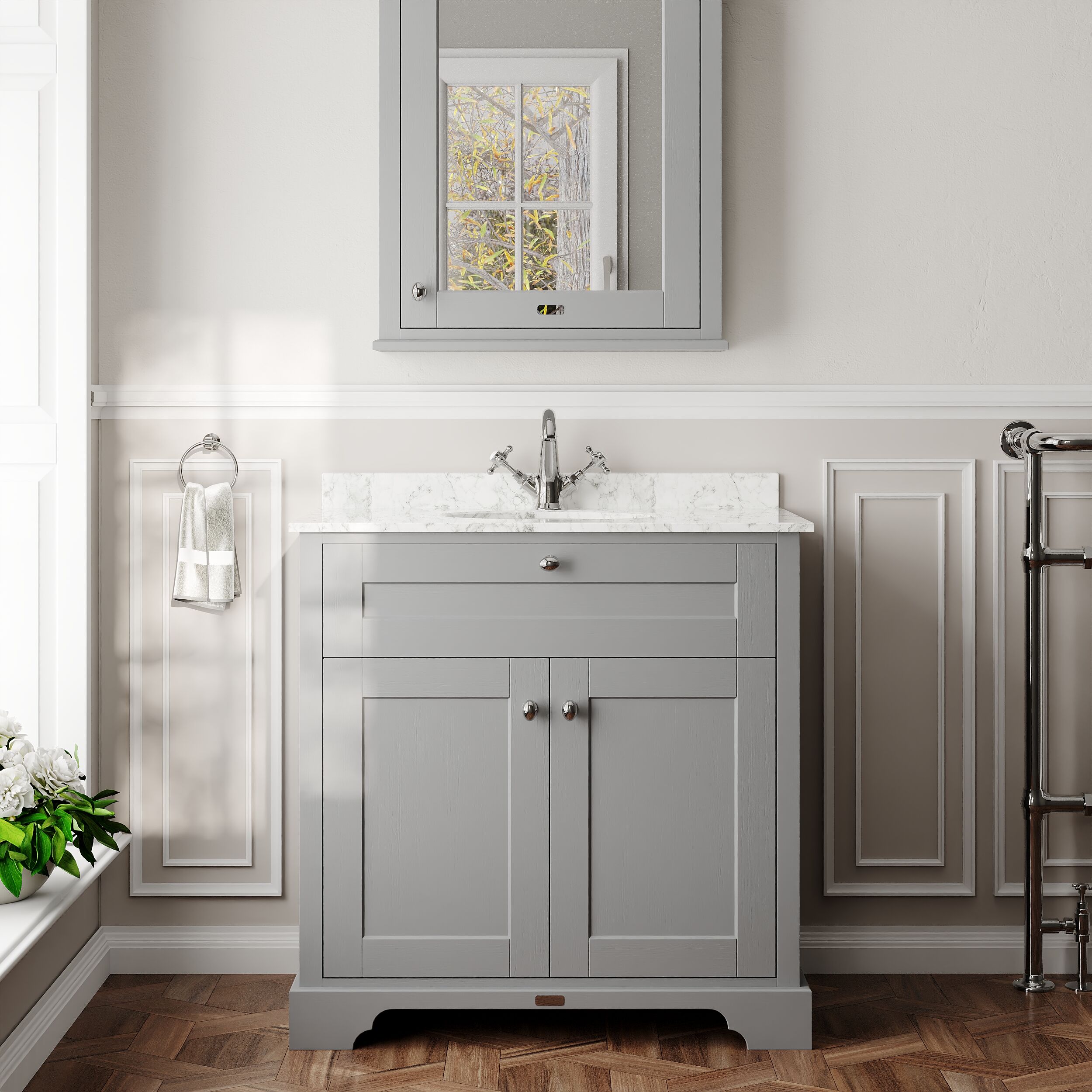 Old London Floor Standing 2 Door Vanity Unit with 1 Tap Hole Grey Marble Top 800mm - Storm Grey