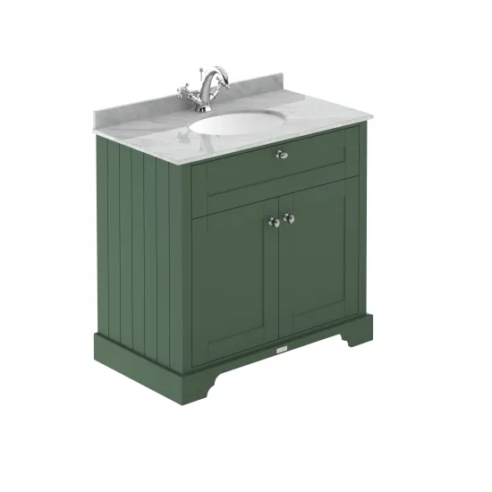 Hudson Reed Old London 800mm Hunter Green Floor Standing 2 Door Vanity Unit With Grey Marble Top Basin
