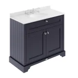 Old London Floor Standing 2 Door Vanity Unit with 1 Tap Hole White Marble Top 1000mm - Storm Grey