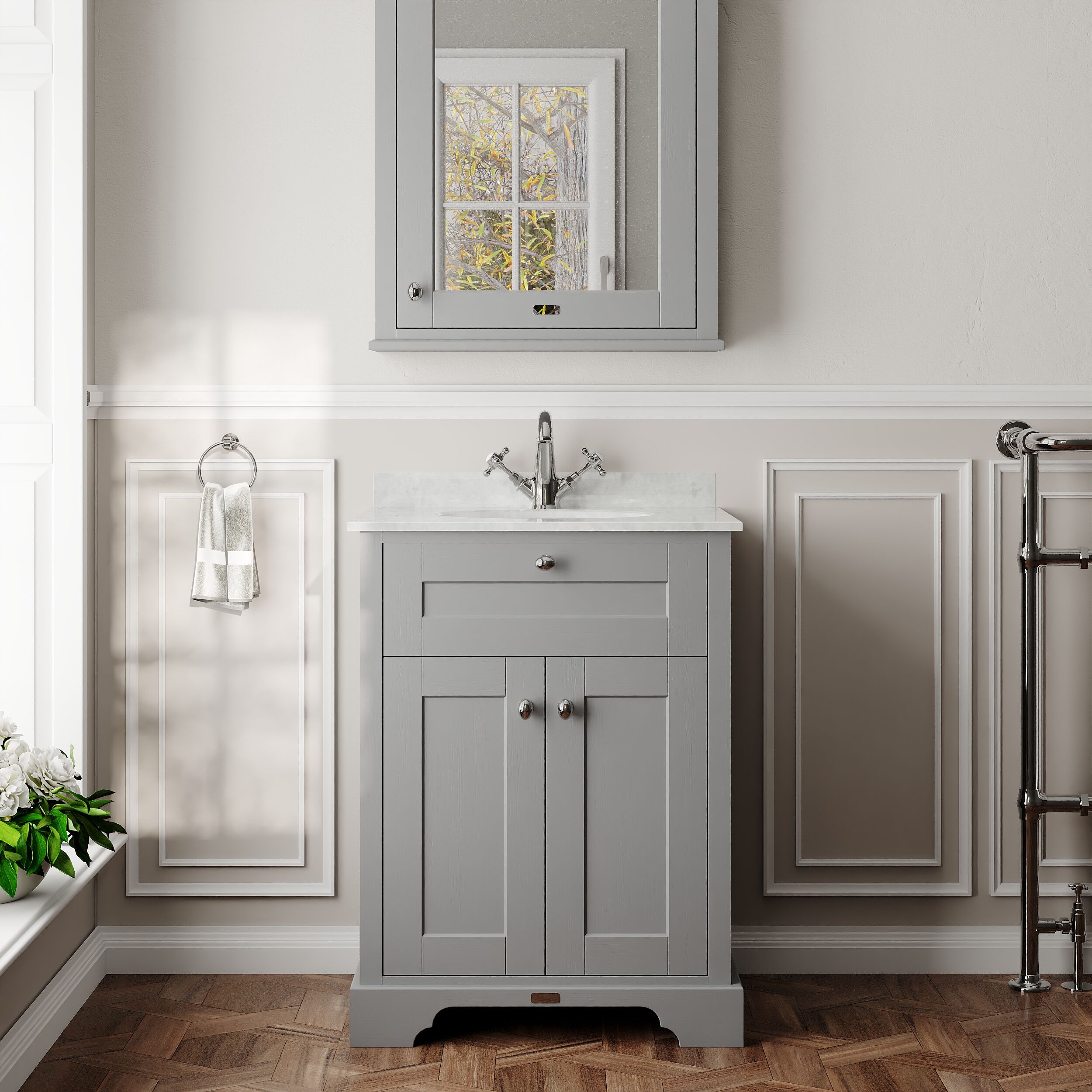 Hudson Reed Old London 600mm Floor Standing 2 Door Vanity Unit With White Marble Top Basin
