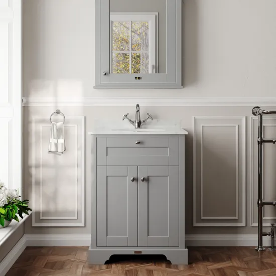 Old London Floor Standing 2 Door Vanity Unit with 1 Tap Hole White Marble Top 600mm - Storm Grey