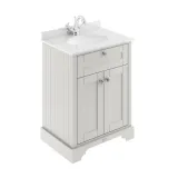 Hudson Reed Old London 620mm Storm Grey Floor Standing 2 Door Vanity Unit with White Marble Top 1 Tap Hole Soft Close
