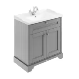 Hudson Reed Old London 800mm Storm Grey Floor Standing 2 Door Vanity Unit with 1 Tap Hole Ceramic Basin