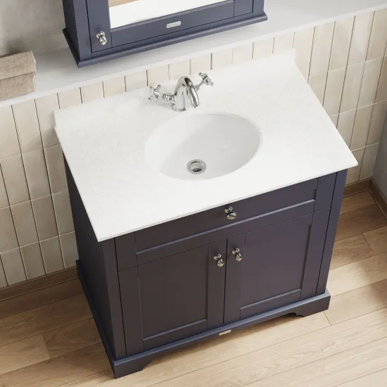 Old London Floor Standing 2 Door Vanity Unit with 1 Tap Hole White Marble Top 800mm - Twilight Blue