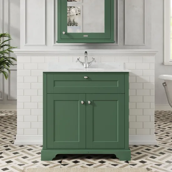 Hudson Reed Old London 800mm Hunter Green Floor Standing 2 Door Vanity Unit With White Marble Top Basin