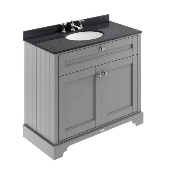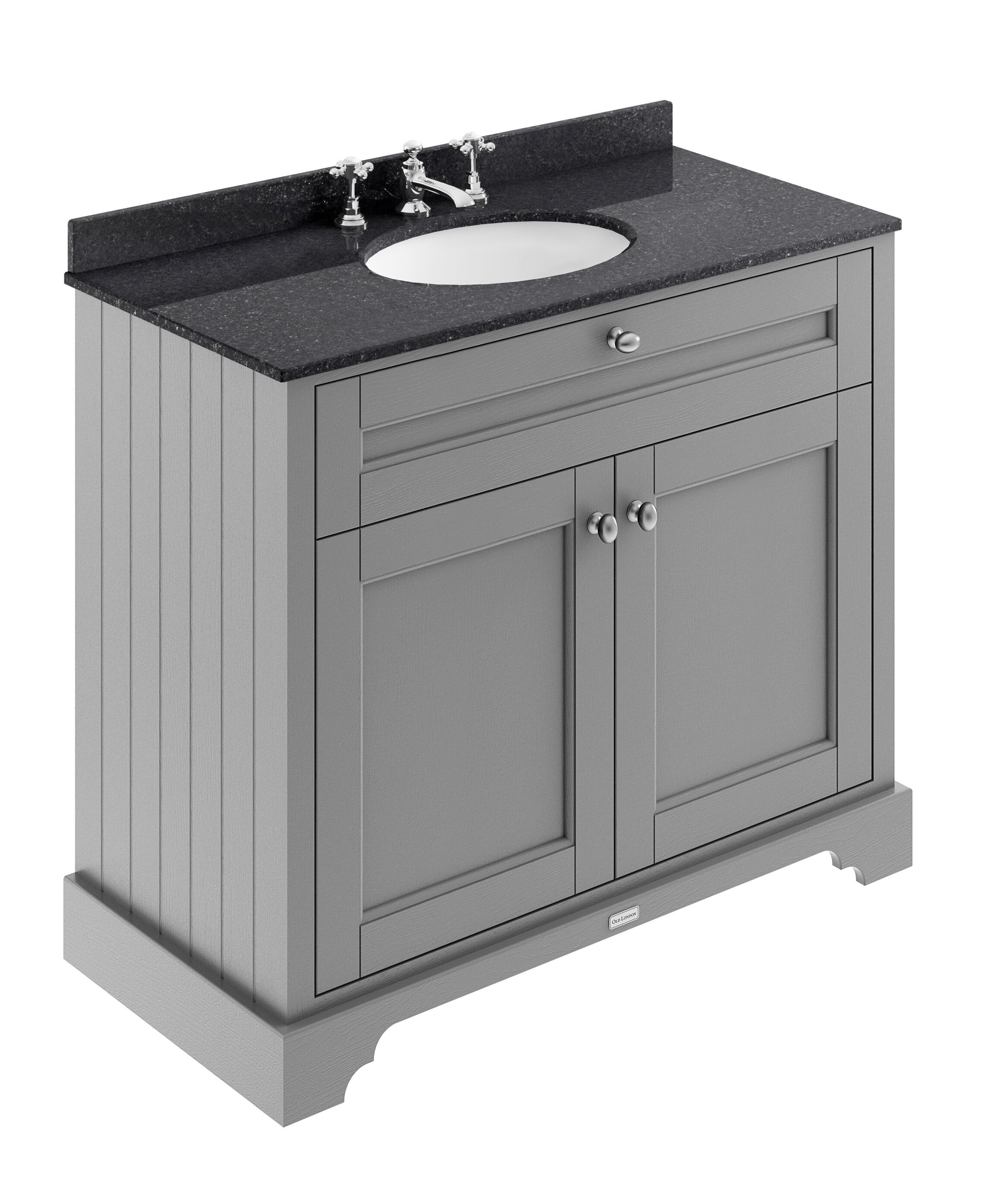 Old London Floor Standing 2 Door Vanity Unit with 3 Tap Hole Black Marble Top 1000mm - Storm Grey