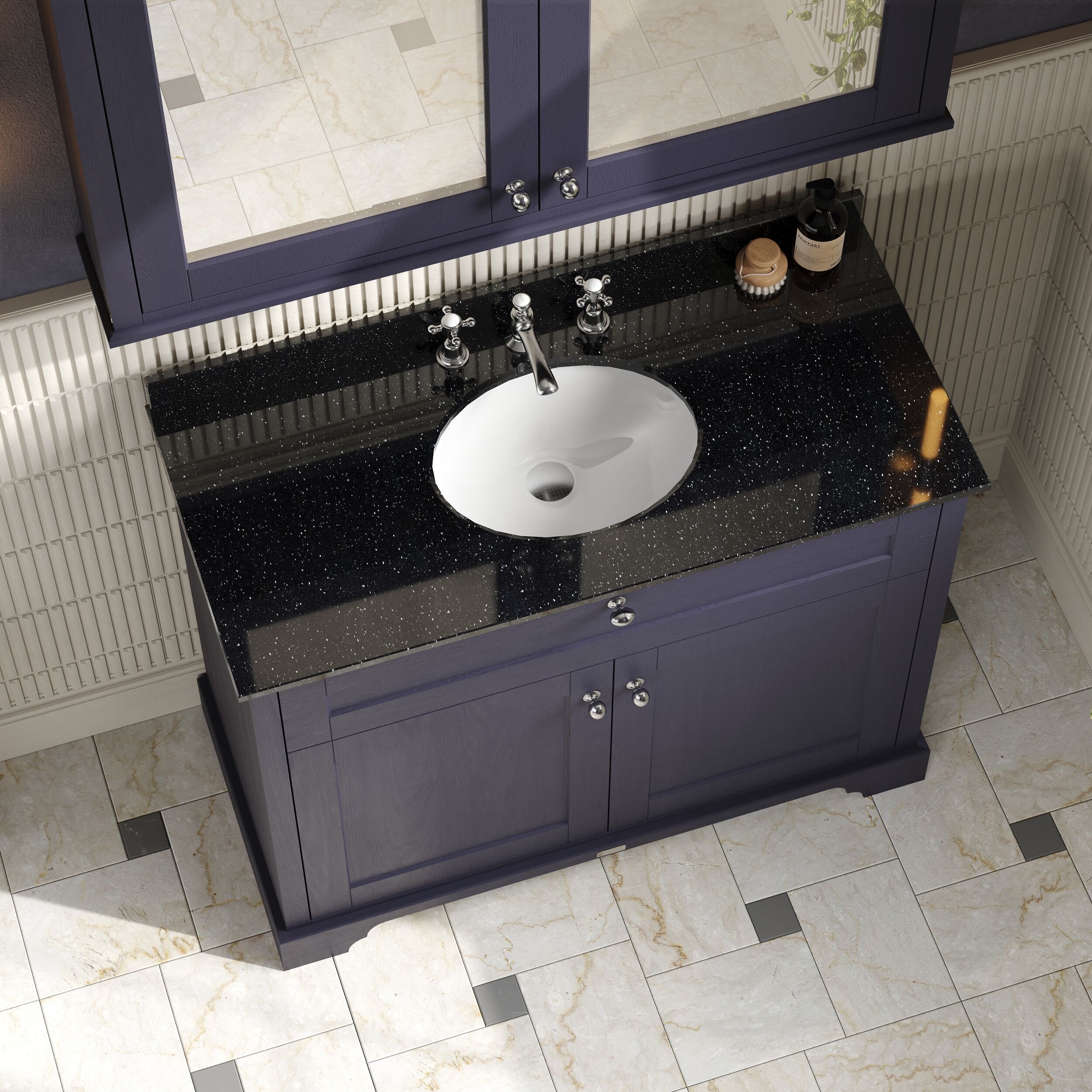 Old London Floor Standing 2 Door Vanity Unit with 3 Tap Hole Black Marble Top 1000mm - Twilight Blue