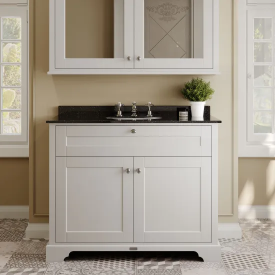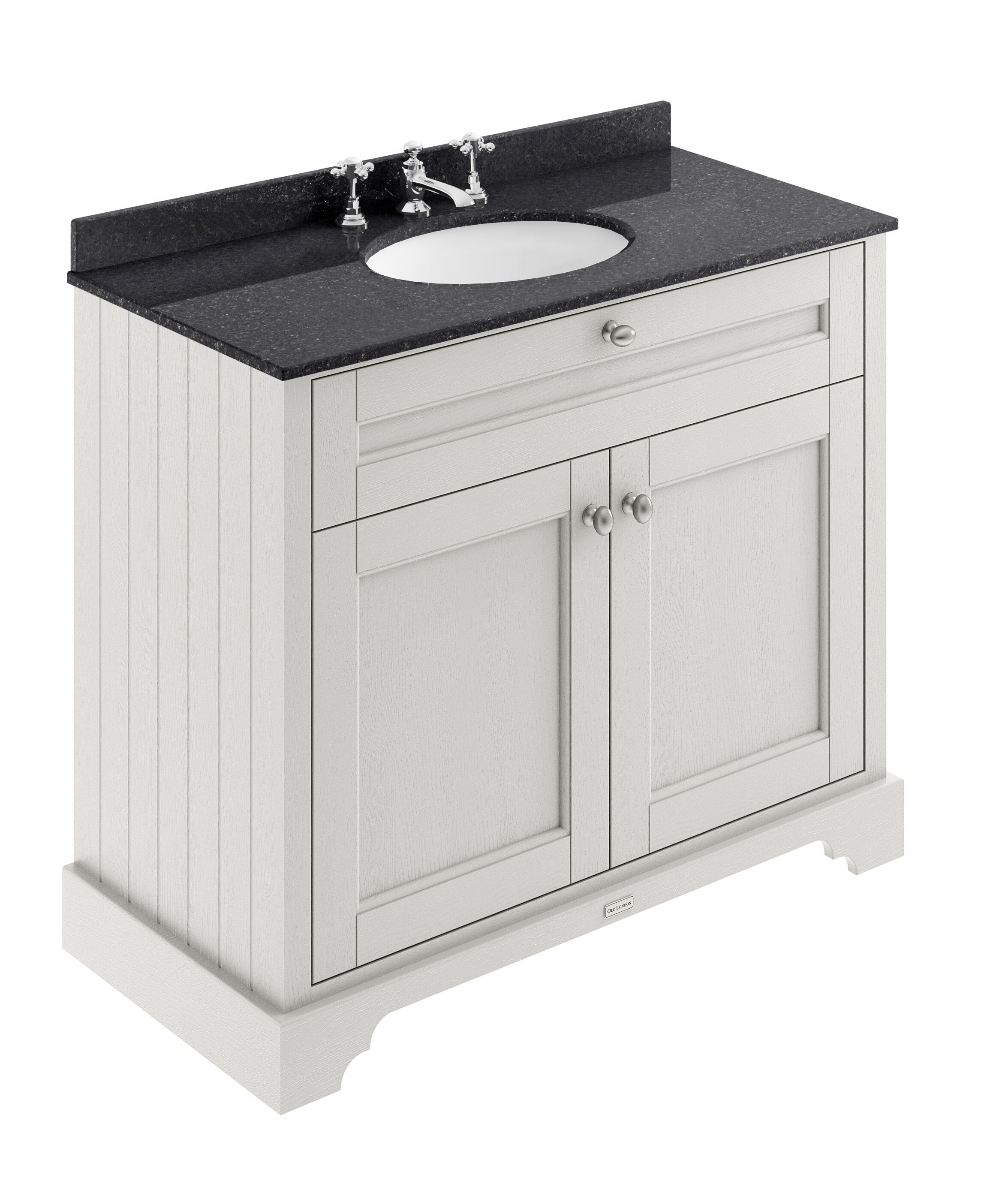 Hudson Reed Old London 1000mm Storm Grey Floor Standing 2 Door Vanity Unit With 3 Tap Hole Black Marble Top Basin