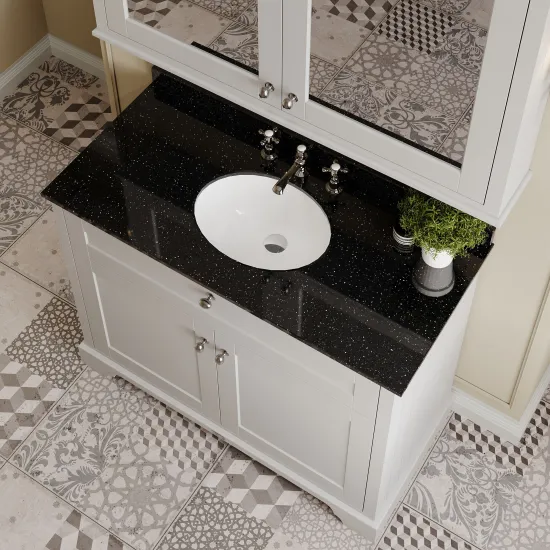 Old London Floor Standing 2 Door Vanity Unit with 3 Tap Hole Black Marble Top 1000mm - Timeless Sand