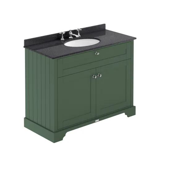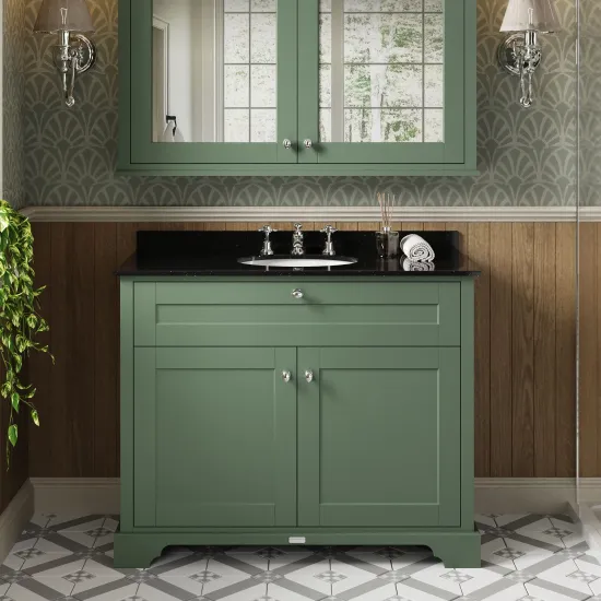 Old London Floor Standing 2 Door Vanity Unit with 3 Tap Hole Black Marble Top 1000mm - Hunter Green