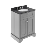 Hudson Reed Old London 600mm Storm Grey Floor Standing 2 Door Vanity Unit with 3 Tap Hole Black Marble Top