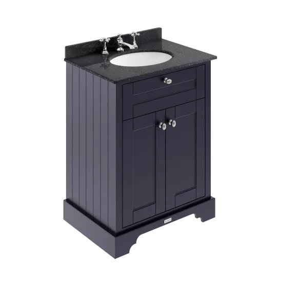 Old London Floor Standing 2 Door Vanity Unit with 3 Tap Hole Black Marble Top 600mm - Twilight Blue