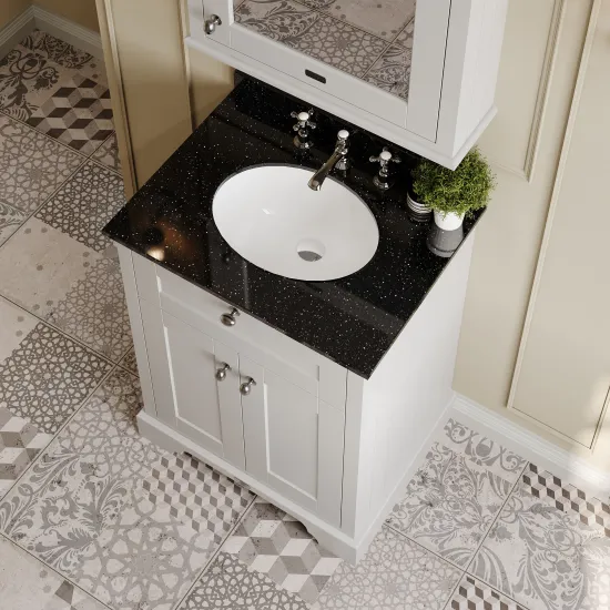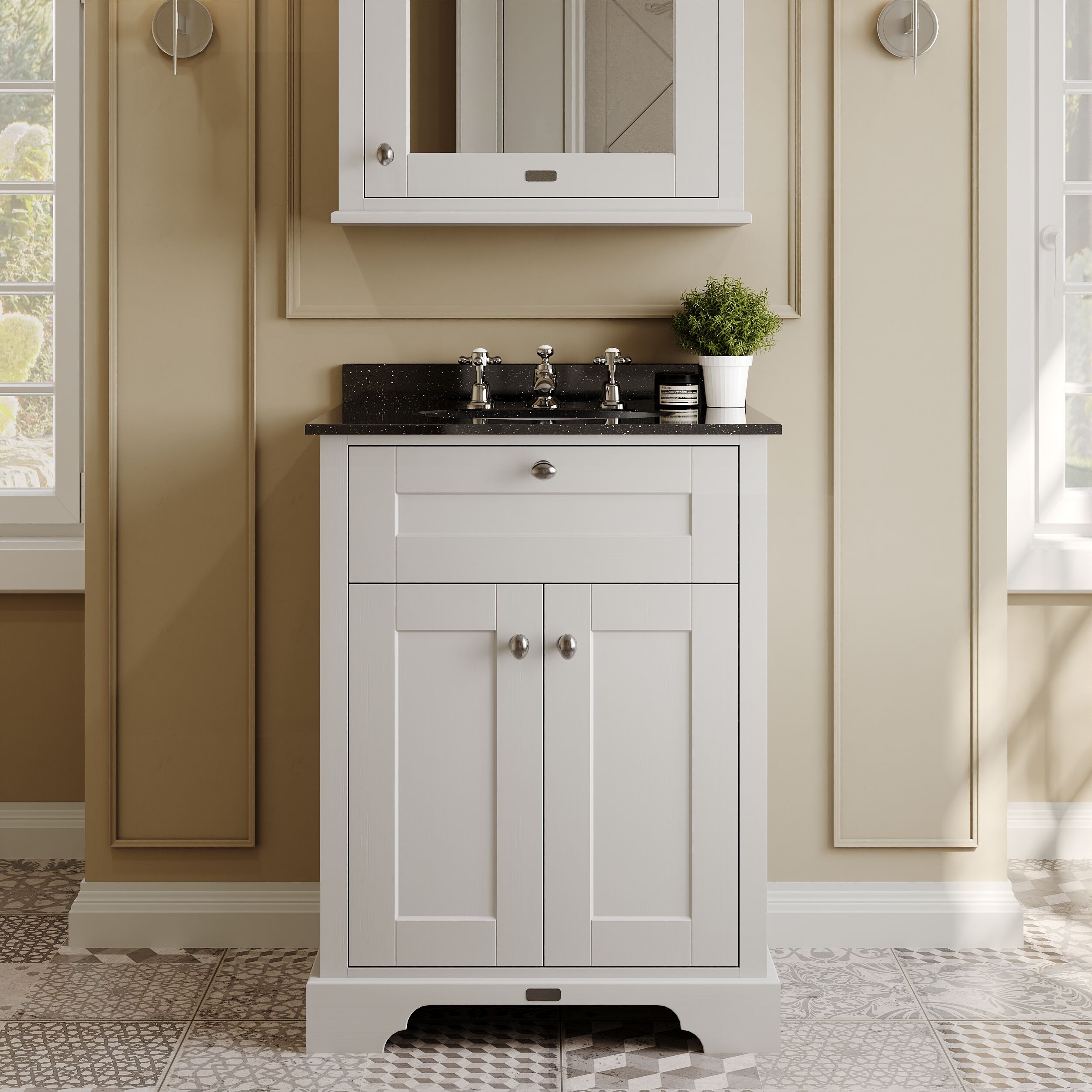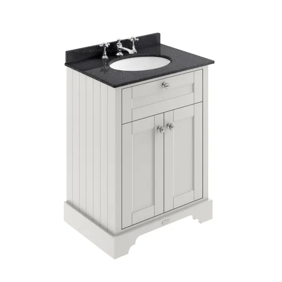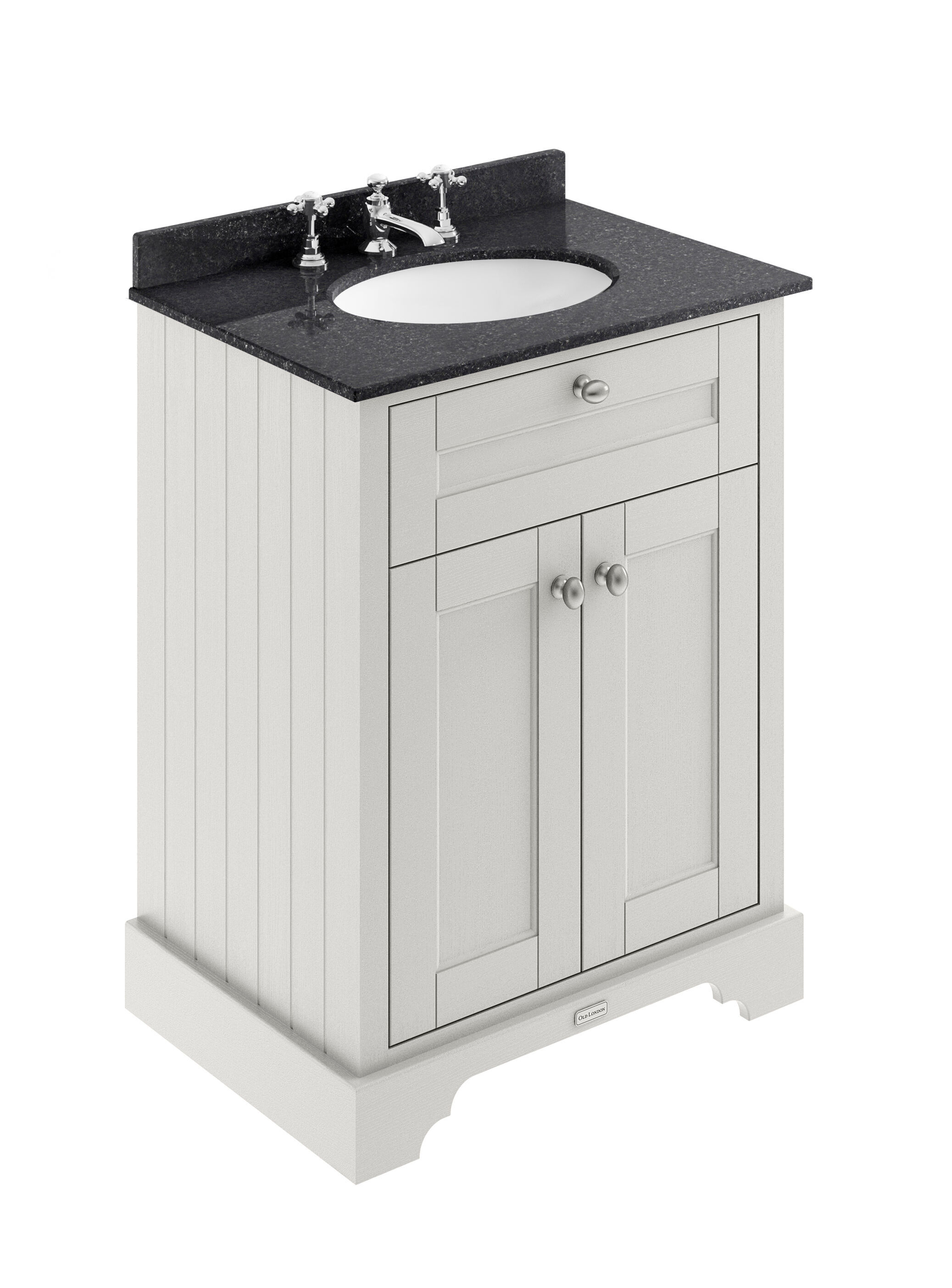 Old London Floor Standing 2 Door Vanity Unit with 3 Tap Hole Black Marble Top 600mm - Timeless Sand